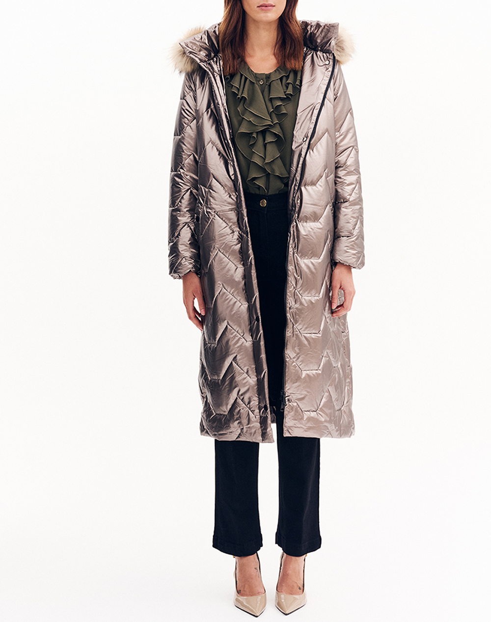 Γυναικείο μακρύ μπουφάν από συνθετικό ύφασμα.