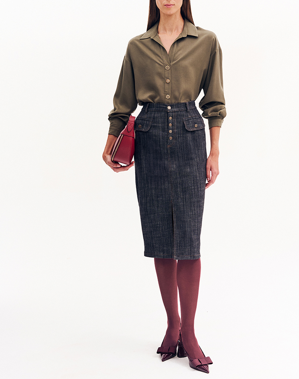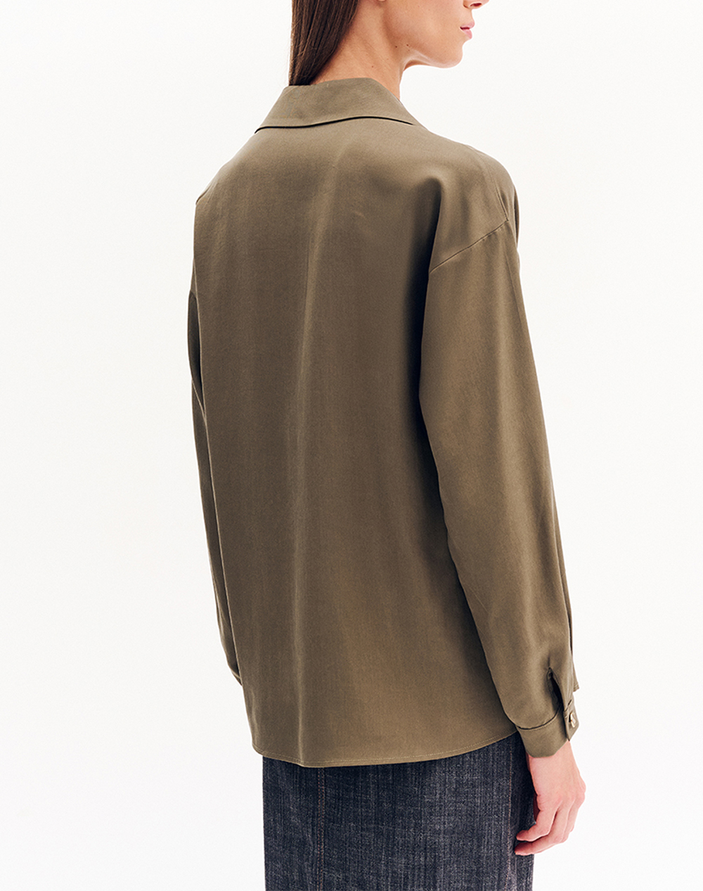 Γυναικεία μπλούζα, μακρυμάνικη, με κουμπί στη μανσέτα, γιακά πουκαμίσου και διακοσμητικά κουμπιά μπροστά. (Σύνθεση: 100% Λυοσέλ)