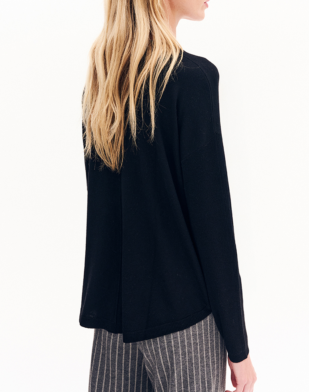 Γυναικείο πουλόβερ, σε κανονική γραμμή, μακρυμάνικη, με "V" λαιμόκοψη και rib άκρες. (Σύνθεση: 35% Νάιλον, 30% Βισκόζη, 20% PC, 10% Μαλλί, 5% Κασμίρ)