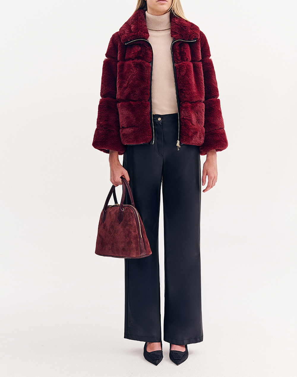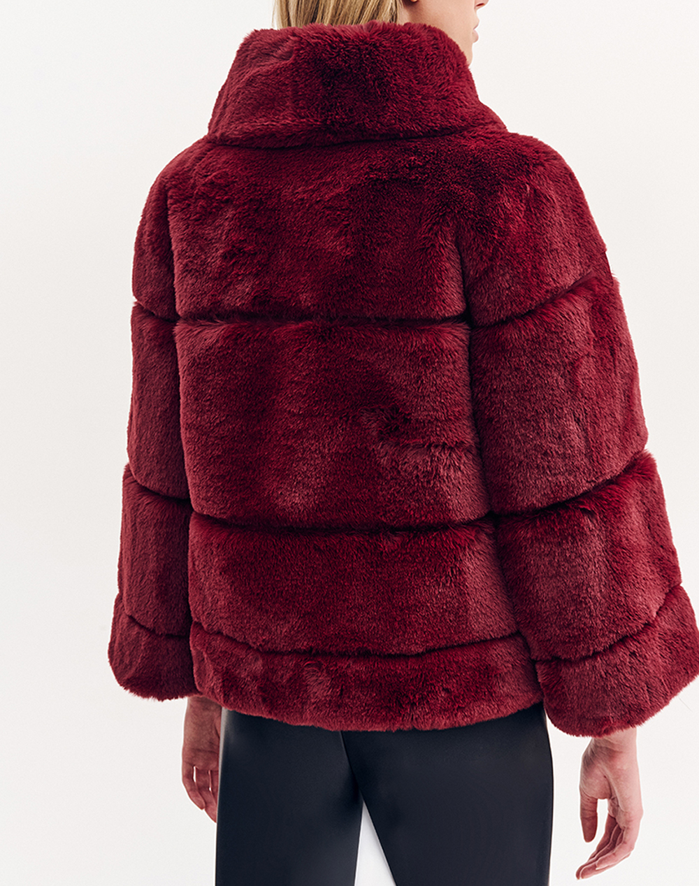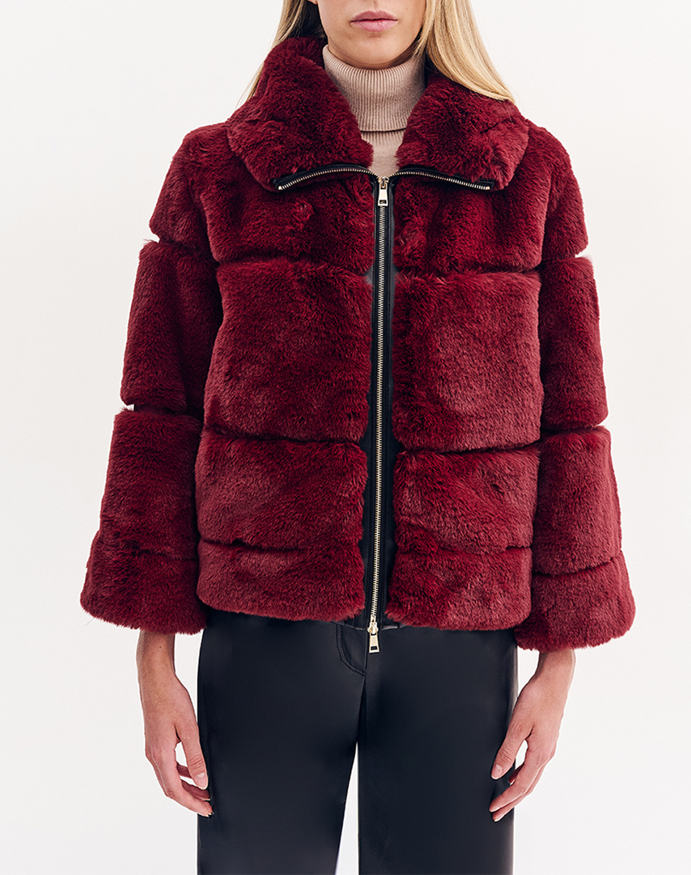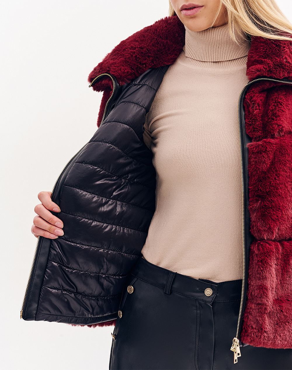 Γυναικείο γούνινο πανωφόρι, με καπιτονέ σχέδιο, μανίκια 3/4, όρθιο γιακά και κλείσιμο κατά μήκος με φερμουάρ. (Σύνθεση: 100% Πολυεστέρας)
