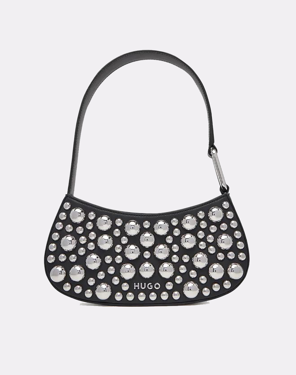 Γυναικεία τσάντα hobo, με κλείσιμο φερμουάρ, λεπτομέρεις με ασημί τρουκς μπροστά και λουθράκι ώμου. (Σύνθεση: Οικολογικό δέρμα)