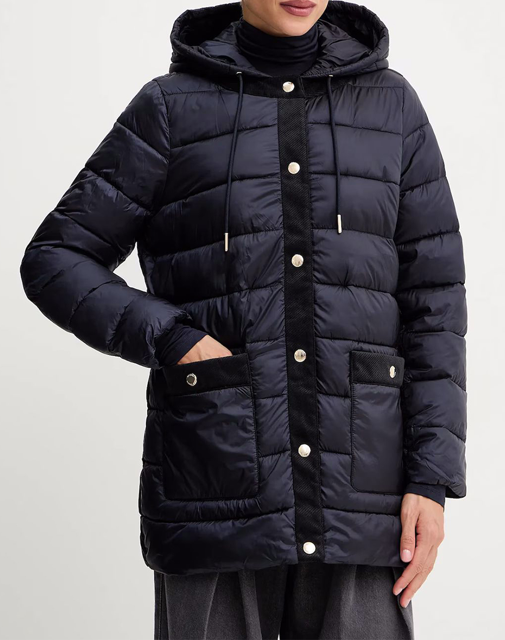 Γυναικείο μπουφάν, σε κανονικλή γραμμή, μακρυμάνικο, με αποσπώμενη κουκούλα με ρυθμιζόμενο κορδόνι, τσέπες και κλείσιμο με κουμπιά.(Σύνθεση: 100% Πολυαμίδιο)