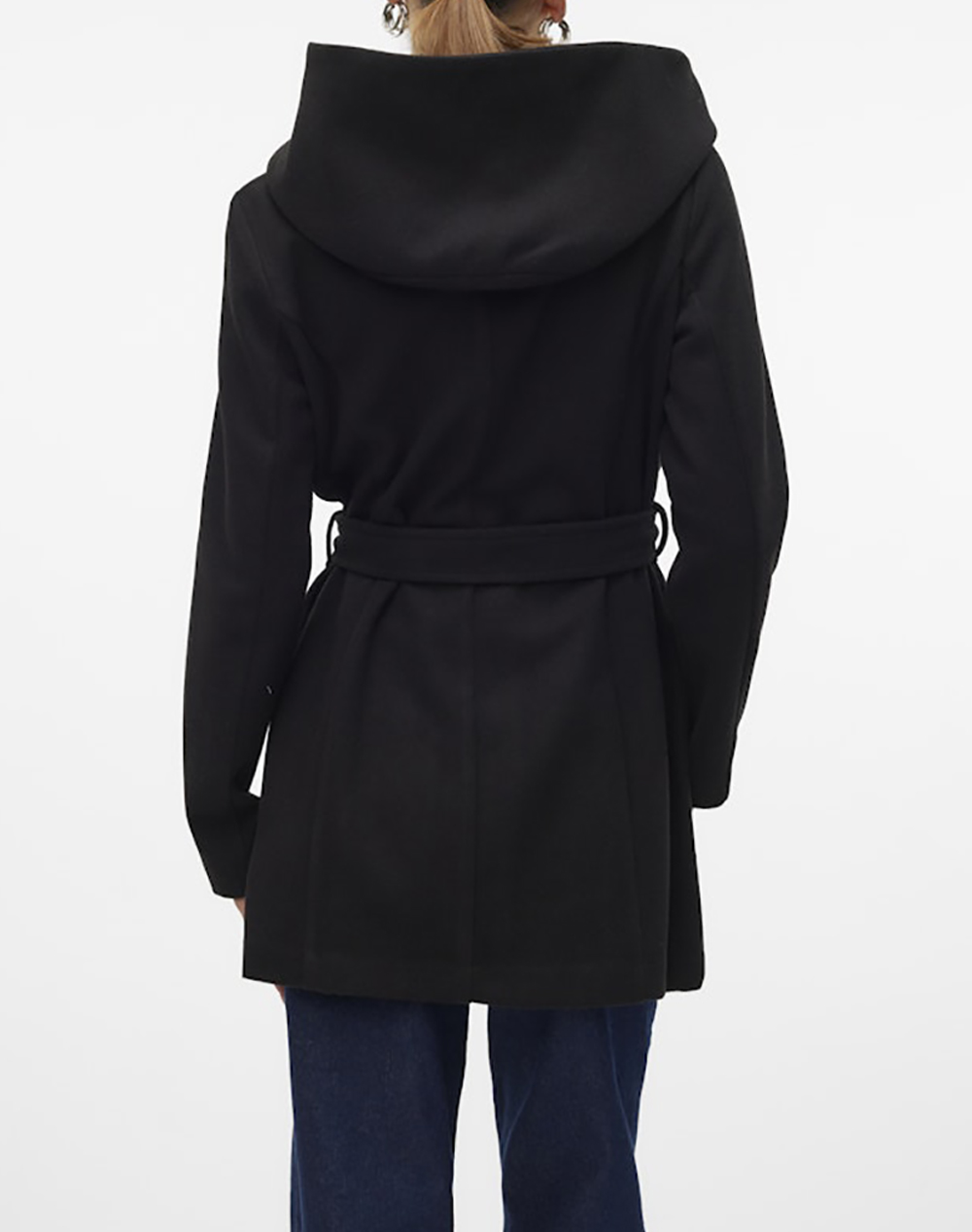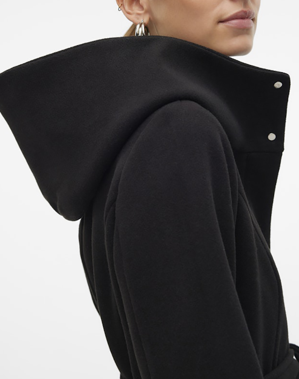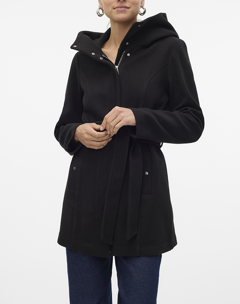 Γυναικείο παλτό, σε κανονική γραμμή, με κουκούλα, ψηλή λαιμόκοψη και κλείσιμο μπροστά με κουμπιά και φερμουάρ. Διαθέτει ζώνη ίδιας ύφανσης στη μέση. (Σύνθεση: 100% Ανακυκλωμένος Πολυεστέρας, Επένδυση: 100% Πολυεστέρας)