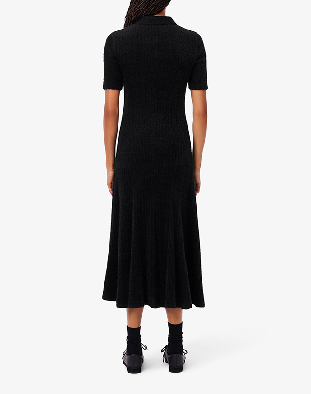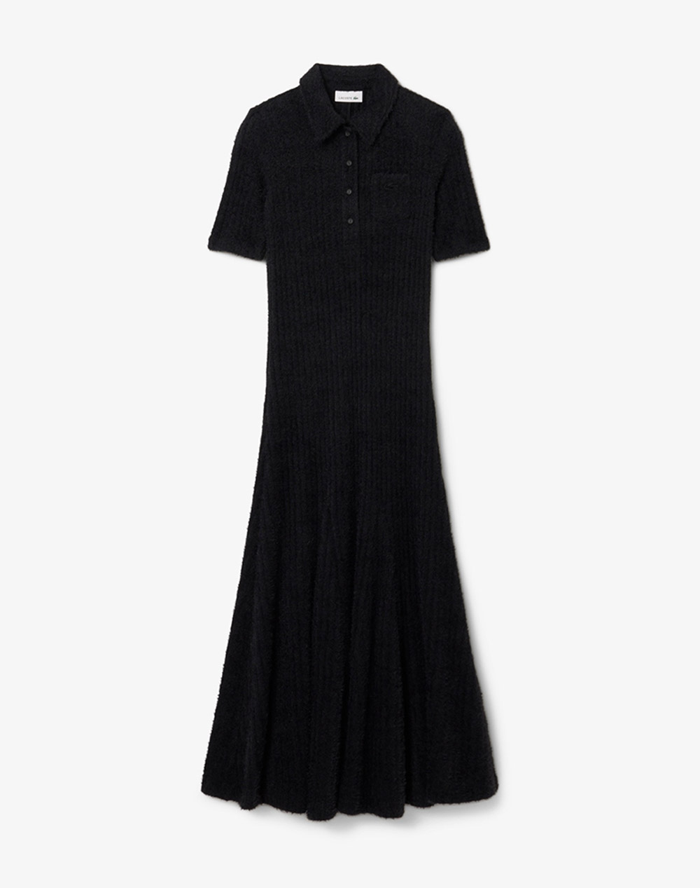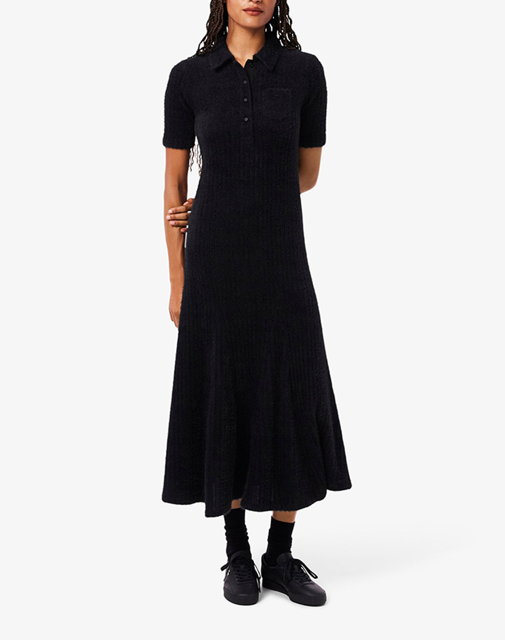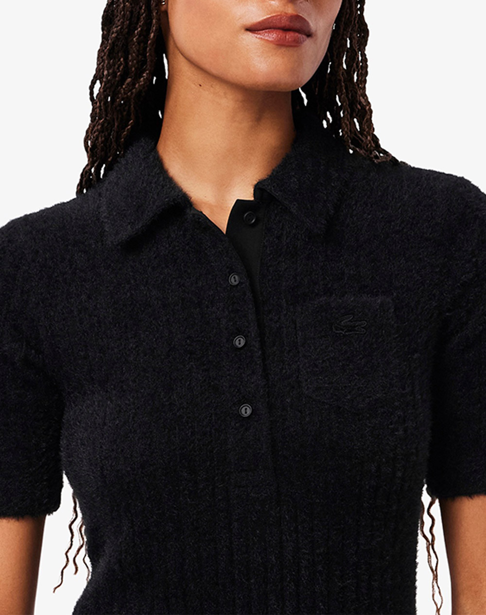 Γυναικείο πλεκτό φόρεμα, σε φαρδιά γραμμή, κοντομάνικο, με γιακά πόλο και τσέπη με λογότυπο στο στήθος. (Σύνθεση: 83% Πολυαμίδιο, 17% Πολυεστέρας)