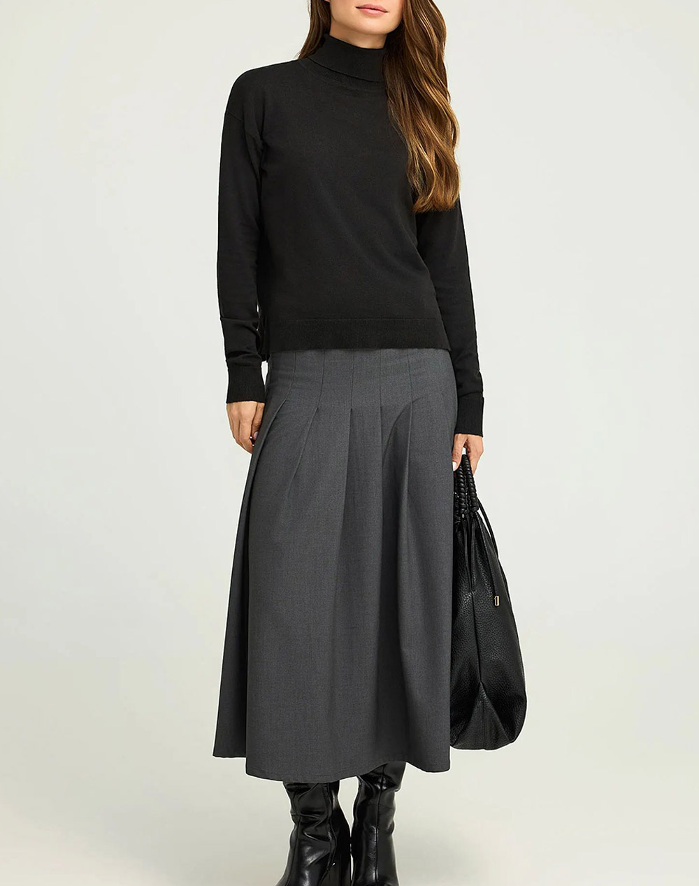 Γυναικεία πλεκτή μπλούζα, σε κανονική γραμμή, μακρυμάνικη, με ψηλό λαιμό, άνοιγμα στο πλάι και τελείωμα με πλέξη rib. (Σύνθεση: 60% Βαμβάκι, 20% Πολυαμίδιο, 20% Βισκόζη)