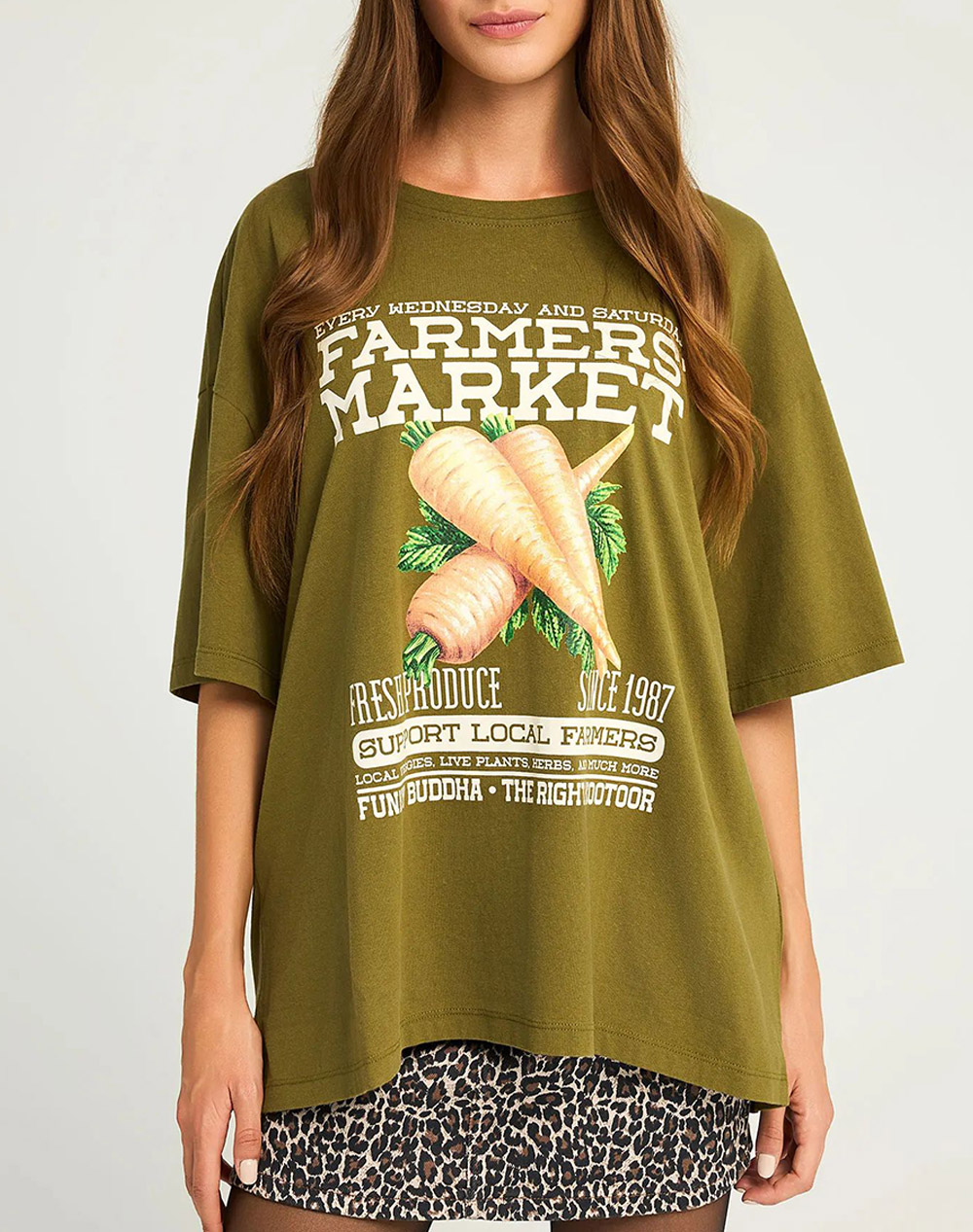 Γυναικείο t-shirt, σε άνετη, χαλαρή γραμμή, κοντομάνικο, με στρογγυλή λαιμόκοψη και μπροστινό τύπωμα. (Σύνθεση: 100% Βαμβάκι)