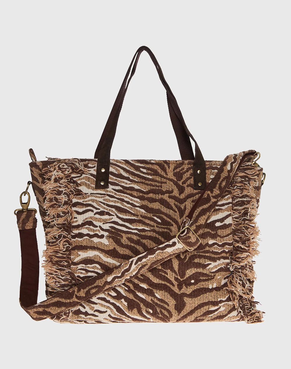 Γυναικεία τσάντα, με διπλές λαβές χειρός, αποσπώμενο λουράκι, κλείσιμο με φερμουάρ και λογότυπο στη μία όψη. (Σύνθεση: 70% Βαμβάκι, 30% Ακρυλικό)