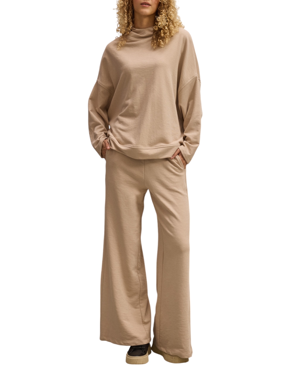 Γυναικείο παντελόνι φούτερ, σε άνετη γραμμή, με πλαϊνές τσέπες και ελαστική μέση. (Σύνθεση: 65% Βαμβάκι, 35% Πολυεστέρας)