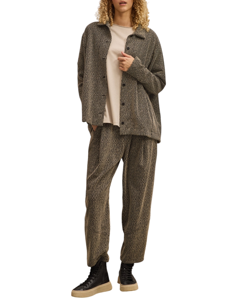 Γυναικείο παντελόνι, σε φαρδιά γραμμή, με ανάγλυφo ύφασμα, τσέπες και λάστιχο στη μέση. (Σύνθεση: 25% Βισκόζη, 71% Πολυεστέρας, 4% Ελαστάνη)