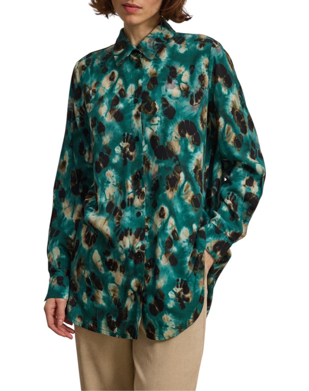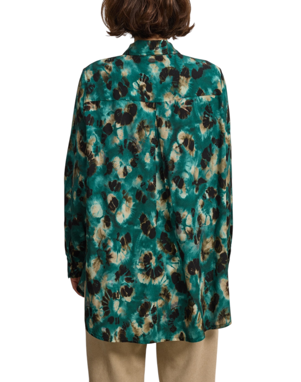 Γυναικείο πουκάμισο, oversized, με tie dye print, μακρυμάνικο, με κλασικό γιακά, ασύμμετρο τελείωμα και κλείσιμο με κουμπιά μπροστά. (Σύνθεση:100% Βισκόζη)