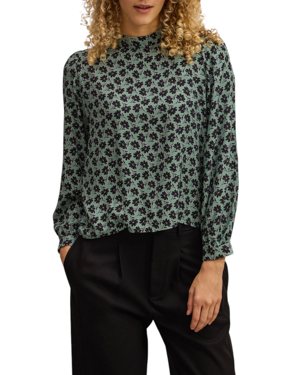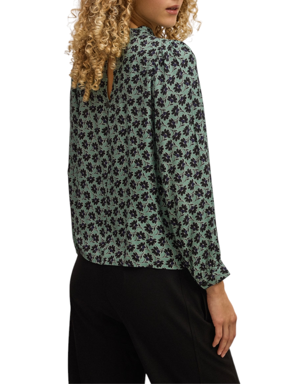 Γυναικεία τουνίκ, σε άνετη γραμμή, μακρυμάνικη, με floral print, μαο γιακά και κλείσιμο πίσω με κουμπί. (Σύνθεση: 100% Βισκόζη)