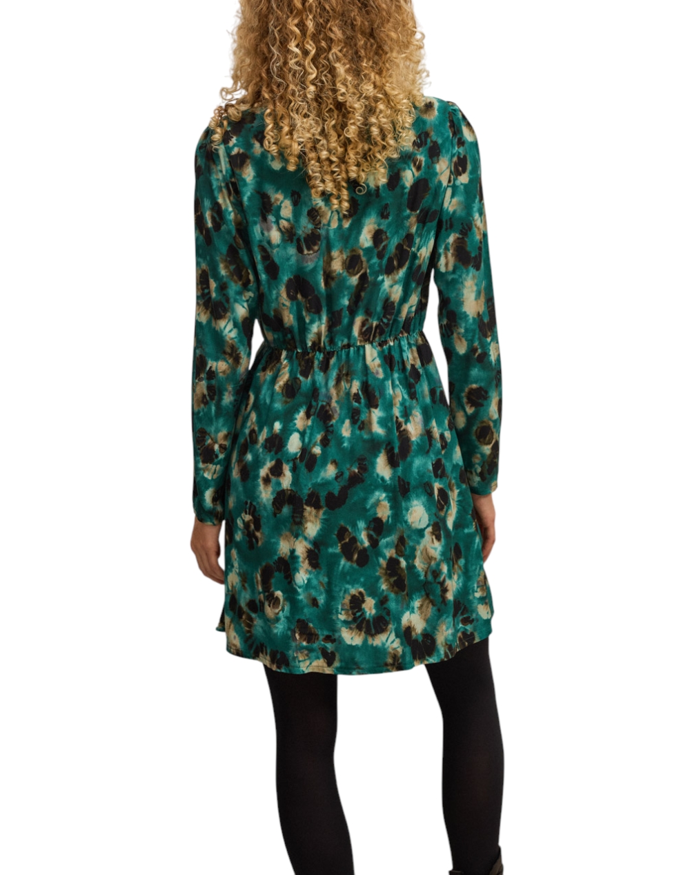 Γυναικείο mini φόρεμα, μακρυμάνικο, με tie dye print, κρουαζέ μπούστο, βάτες και ελαστική μέση. (Σύνθεση: 55% Ρεγιόν, 45% Βισκόζη)