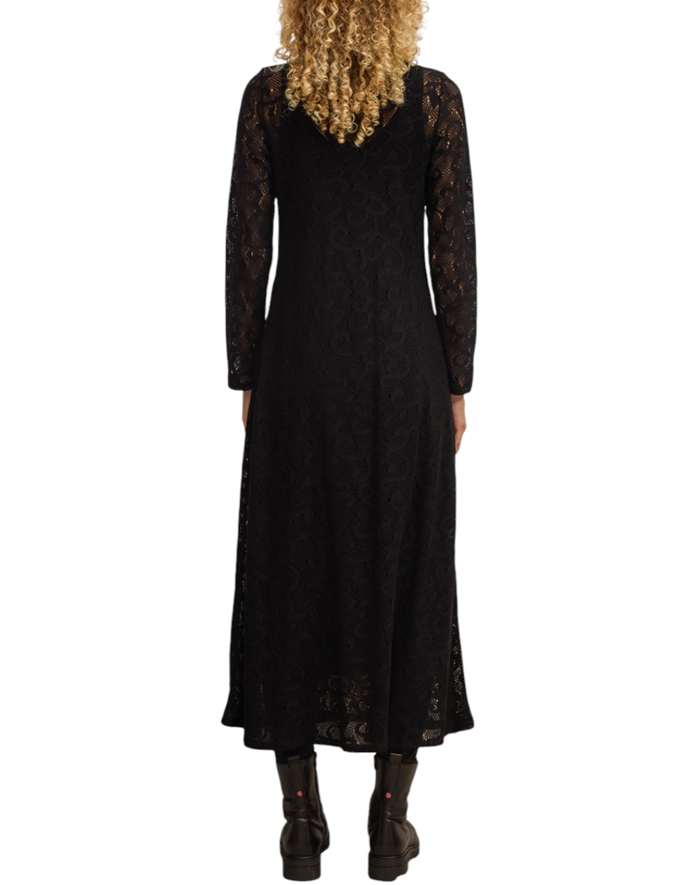 Γυναικείο μακρύ φόρεμα, μακρυμάνικο, σε cloche γραμμή, με δαντέλα και στρογγυλή λαιμόκοψη.Περιλαμβάνει ξεχωριστό εσωτερικό jersey φόρεμα χωρίς μανίκια. (Σύνθεση: 100% Βαμβάκι & 100% Βισκόζη)