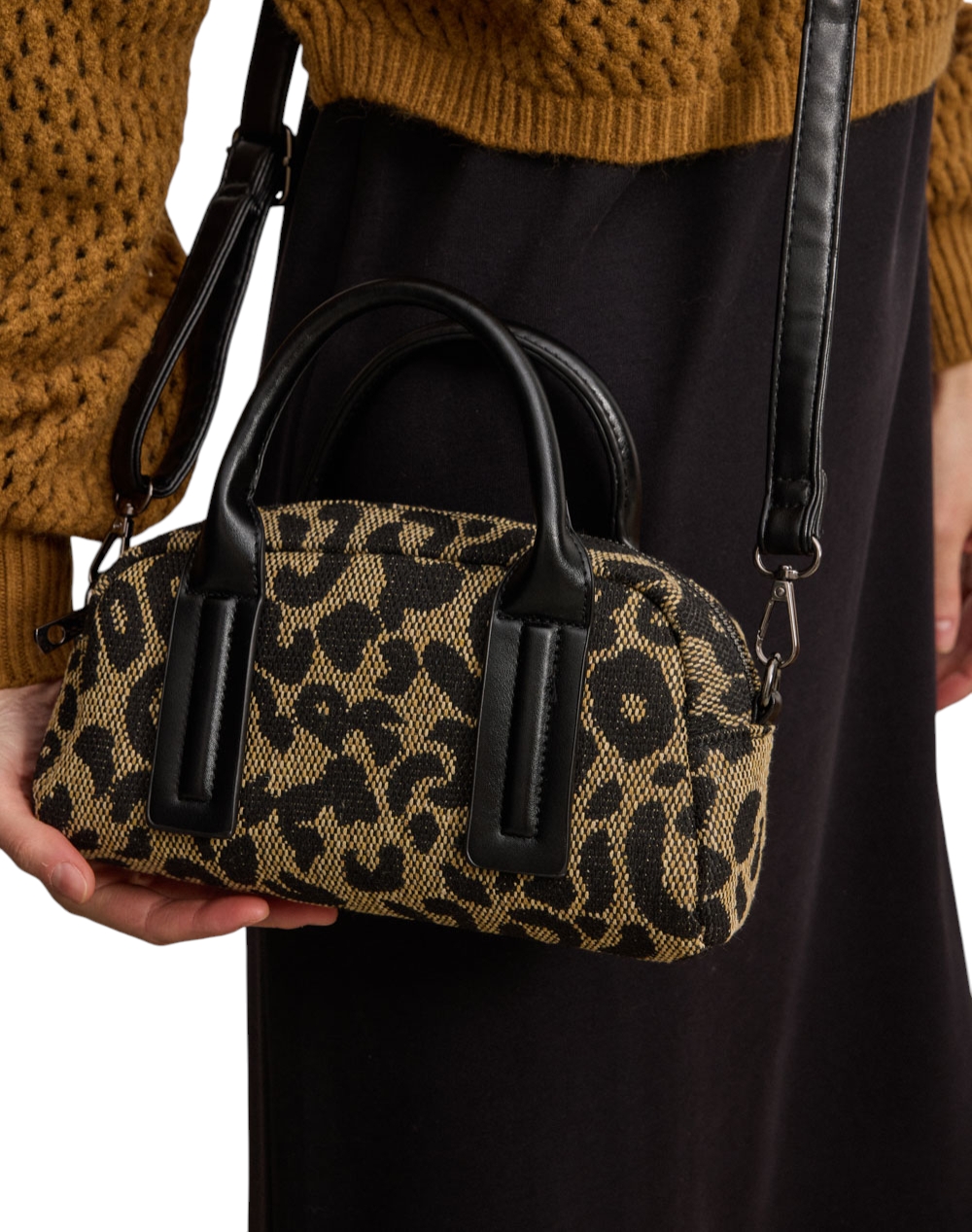 Γυναικεία τσάντα χειρός, με animal print μοτίβο, αποσπώμενο και ρυθμιζόμενο λουράκι ώμου, σταθερές χειρολαβές και κλείσιμο με φερμουάρ (Σύνθεση: 100% Τεχνόδερμα)