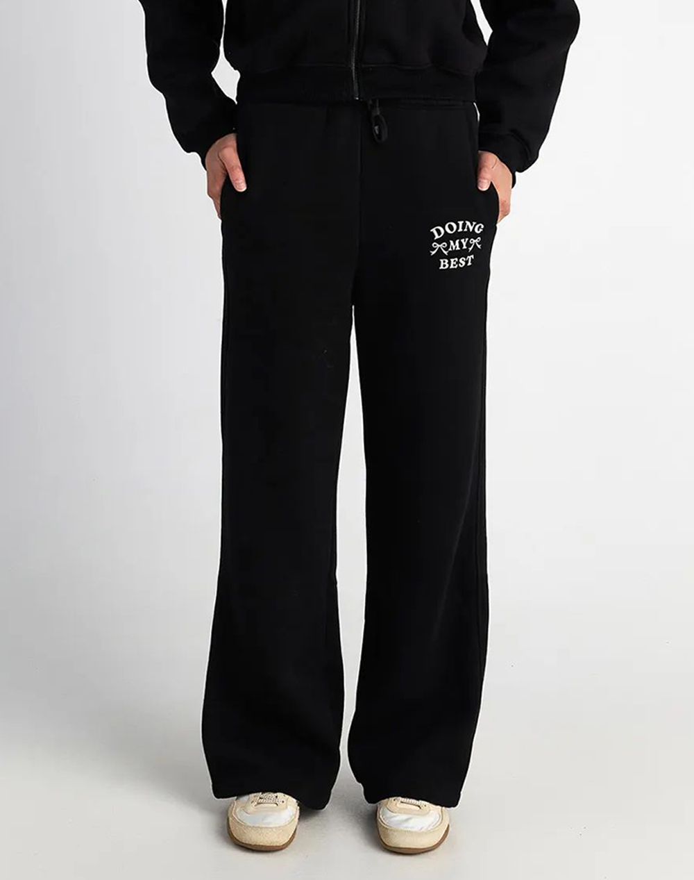 Γυναικείο παντελόνι φόρμας, μονόχρωμο, σε κανονική, άνετη γραμμή, με ελαστική μέση, πλαϊνές τσέπες και κορδόνι περίσφυξης. (Σύνθεση: 65% Βαμβάκι, 35% Πολυεστέρας)
