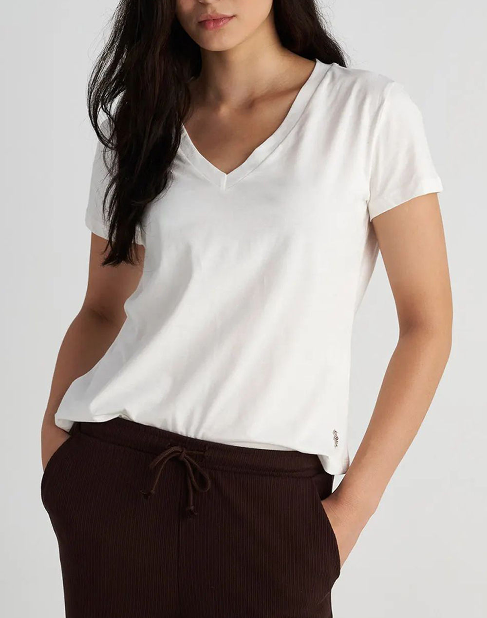 Γυναικεία μπλούζα, σε άνετη γραμμή, κοντομάνικη, μονόχρωμη, με V λαιμόκοψη. (Σύνθεση: 100% Βαμβάκι)