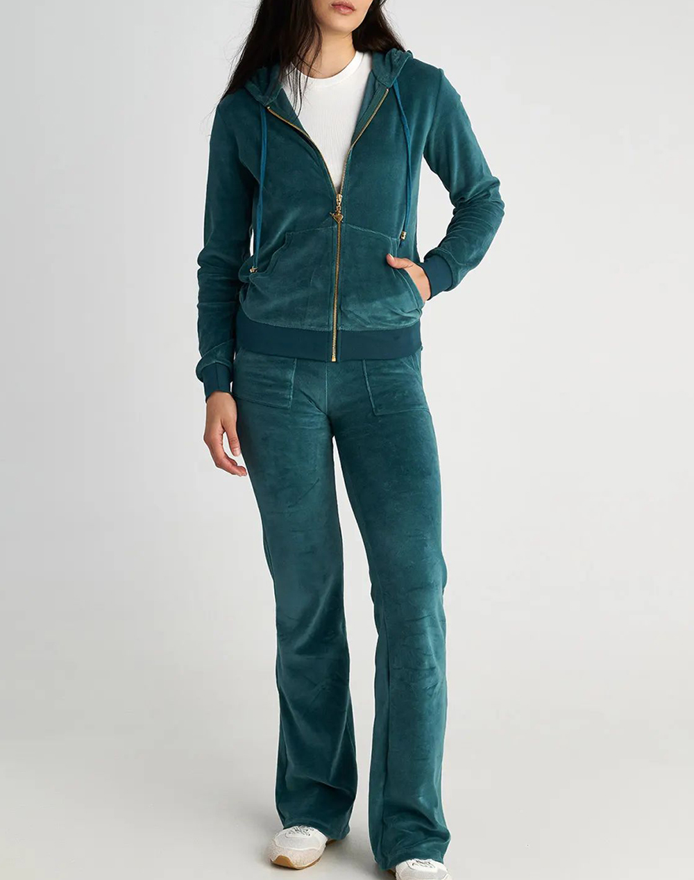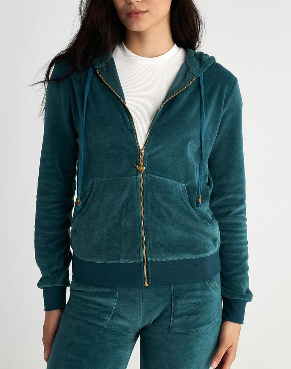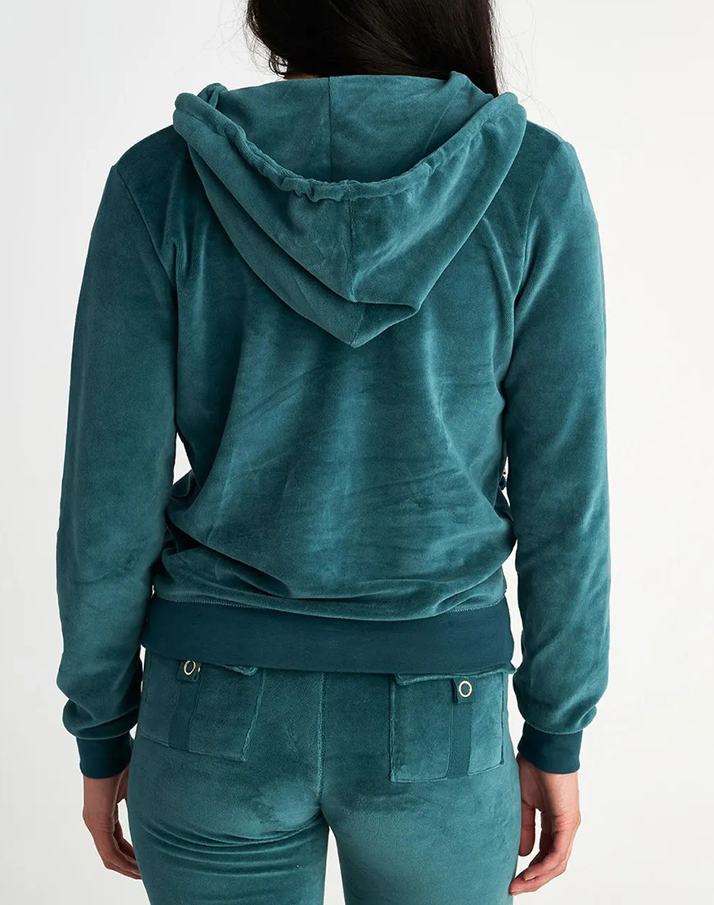 Γυναικεία αθλητική ζακέτα, μονόχρωμη, μακρυμάνικη, με βελουτέ υφή, κουκούλα με ρυθμιζόμενο κορδόνι, λάστιχο στην μέση, τσέπες μπροστά και κλείσιμο με φερμουάρ. (Σύνθεση: 80% Βαμβάκι, 20% Πολυεστέρας)
