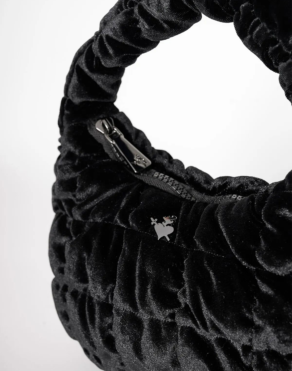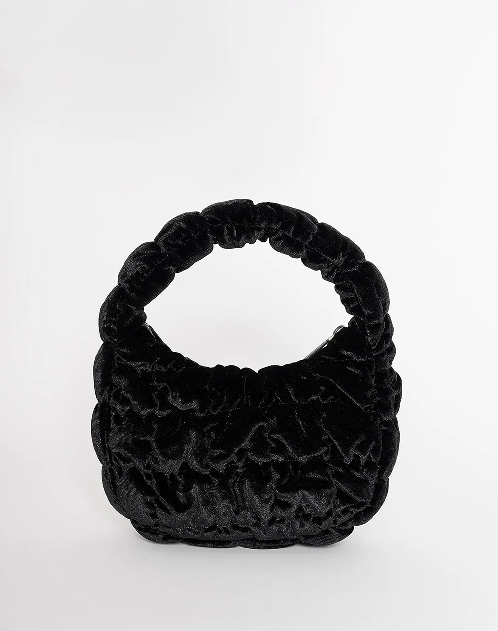 Γυναικεία τσάντα ώμου, βελουτέ, με καπιτονέ σχέδιο, κλείσιμο με φερμουάρ και μία λαβή χειρός. Διαστάσεις: 10 x 23 x 15 εκ. (Σύνθεση: 100% Πολυεστέρας)