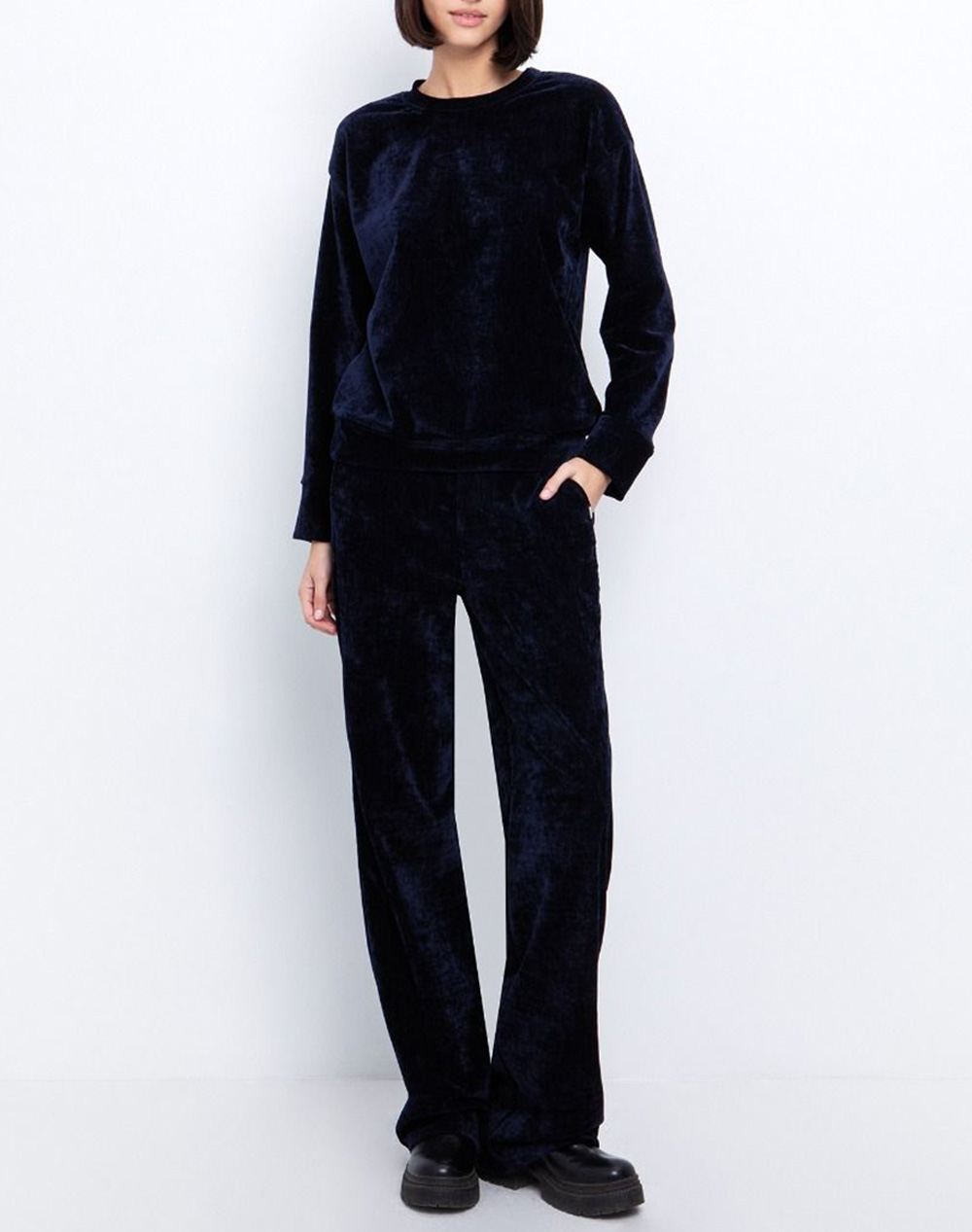 Γυναικείο παντελόνι φόρμας, σε κανονική, ίσια γραμμή, με πλαϊνές τσέπες, ελαστική μέση και βελουτέ υφή. (Σύνθεση: 95% Πολυεστέρας, 5% Ελαστάνη)