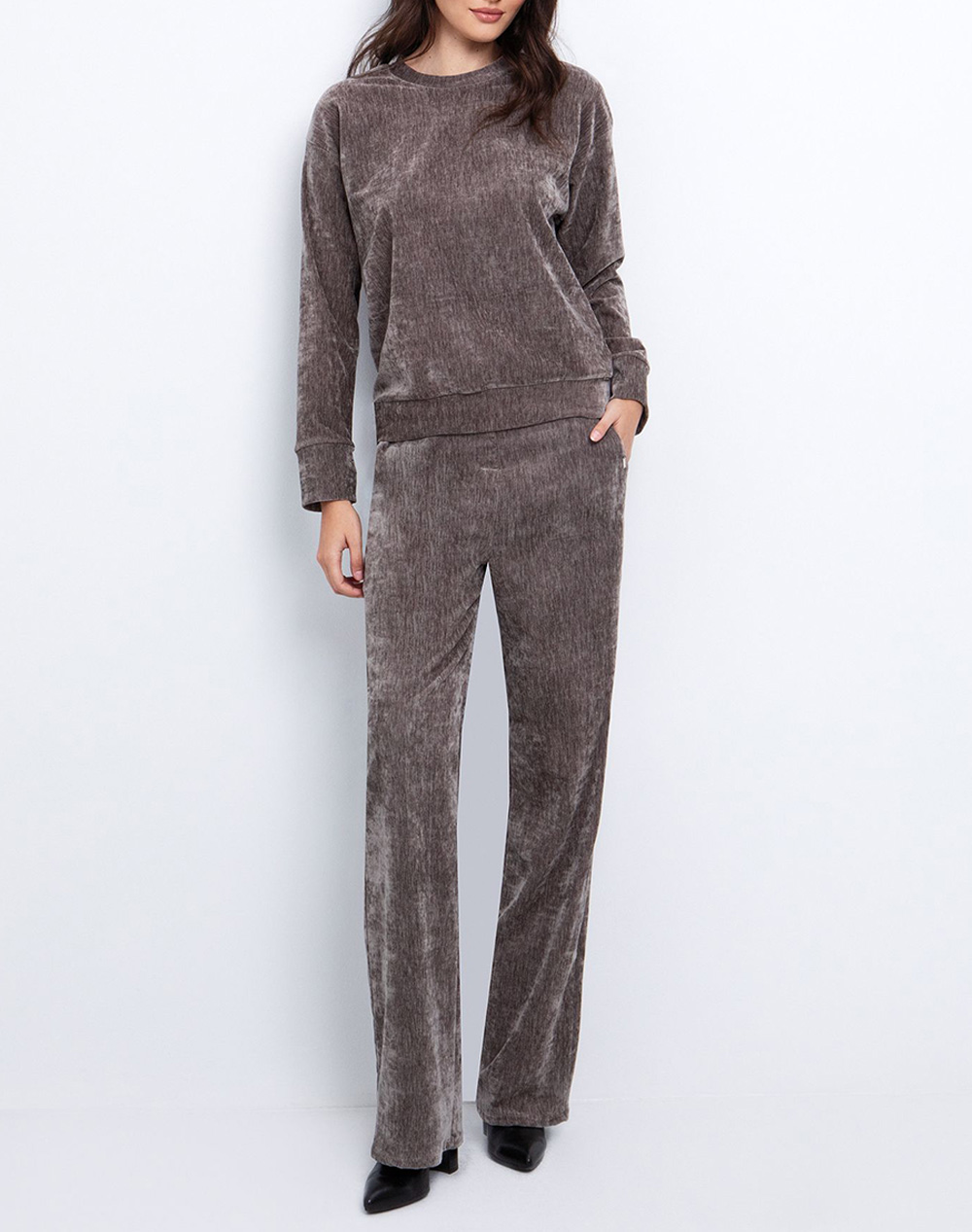 Γυναικείο παντελόνι φόρμας, σε κανονική, ίσια γραμμή, με πλαϊνές τσέπες, ελαστική μέση και βελουτέ υφή. (Σύνθεση: 95% Πολυεστέρας, 5% Ελαστάνη)