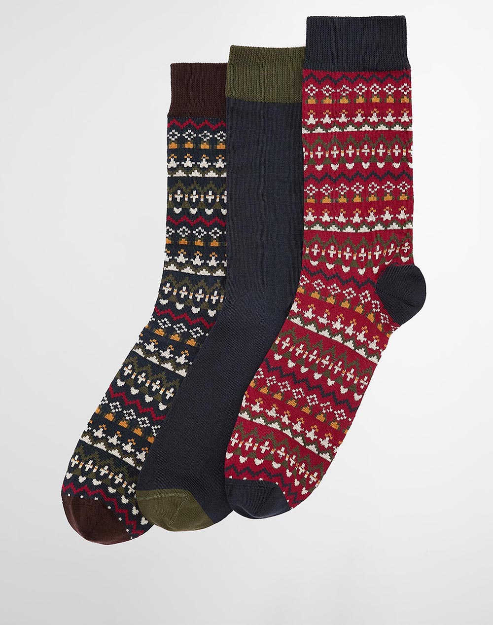 Ανδρικές κάλτσες σετ 3 τμχ., πολύχρωμες, με rib άκρες και λεπτομέρεια λογότυπο Barbour στο πέλμα. (Σύνθεση: 78% Βαμβάκι, 21% Πολυαμίδιο, 1% Ελαστάνη)