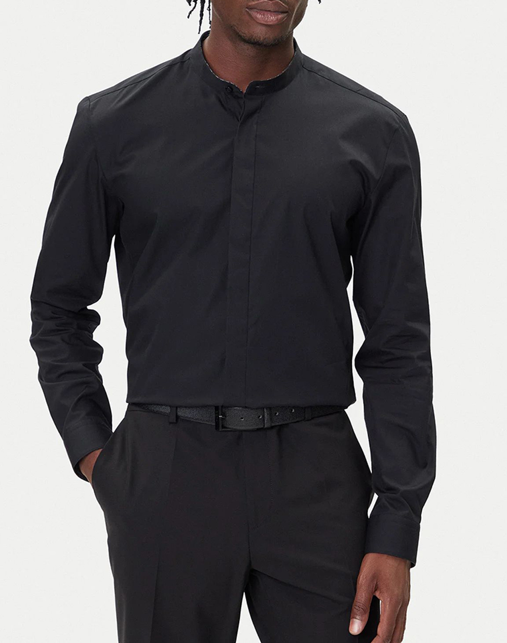 Ανδρικό πουκάμισο, σε στενή γραμμή, μακρυμάνικο, με γιακά μάο και κλείσιμο μπροστά με κουμπιά. (Σύνθεση: 100% Βαμβάκι)