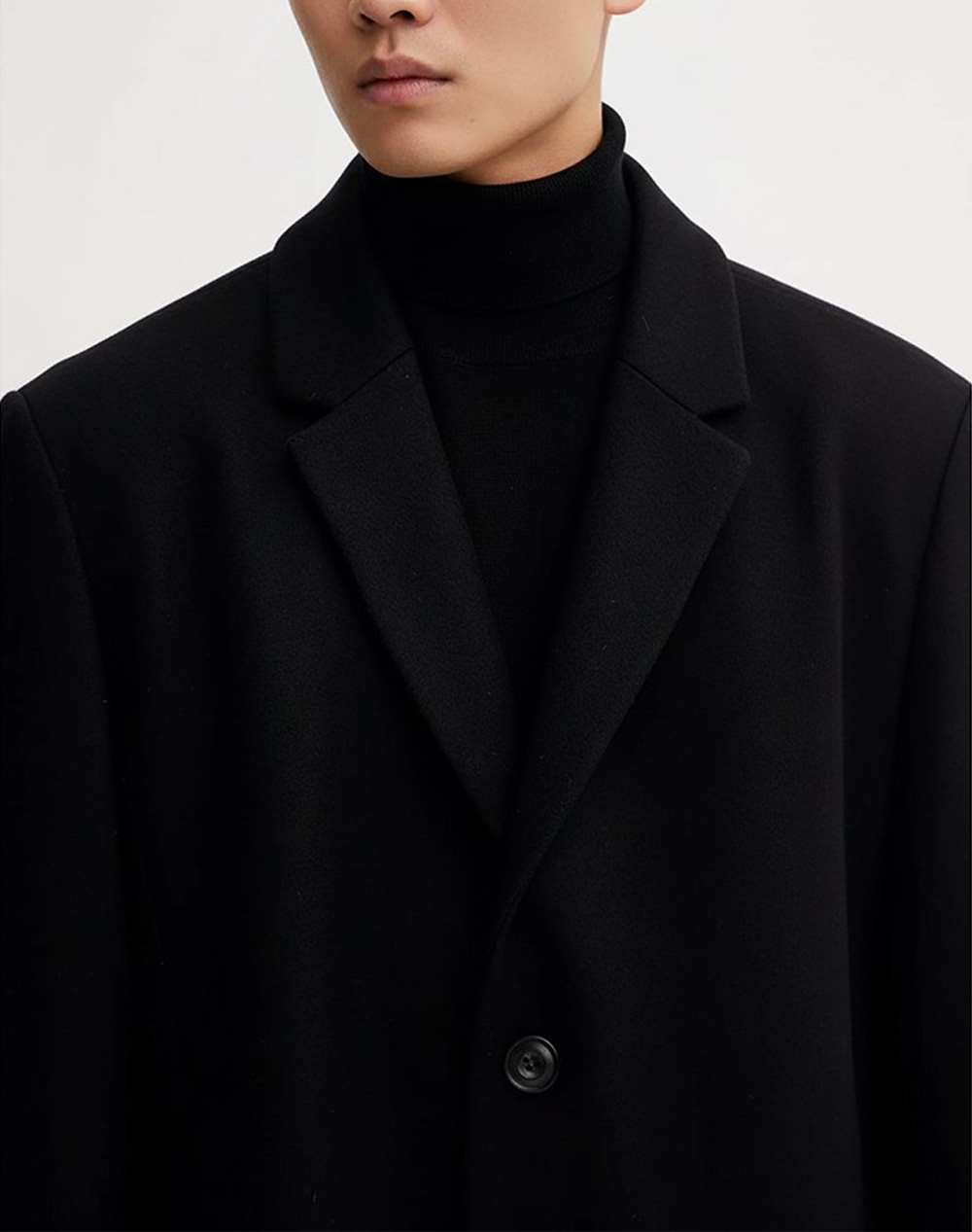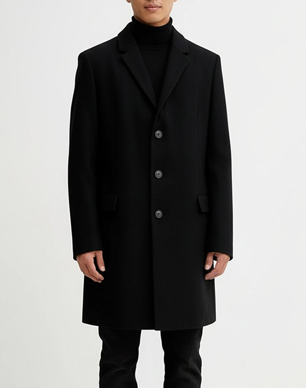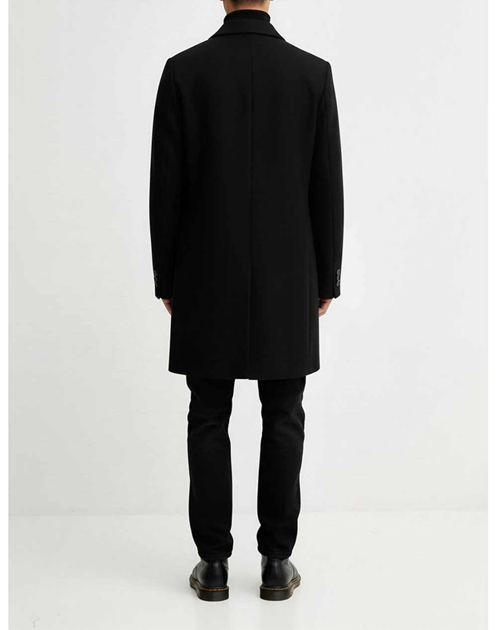 Ανδρικό παλτό, σε κανονική γραμμή, μονόχρωμο, μακρυμάνικο, με γιακά πέτο και κλείσιμο μπροστά με κουμπιά. (Σύνθεση: 80% Φυσικό Μαλλί, 20% Πολυαμίδιο)