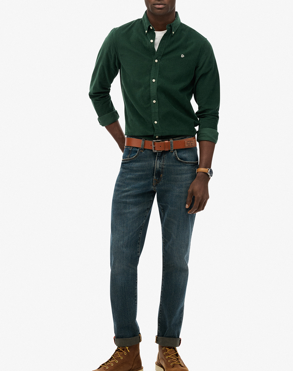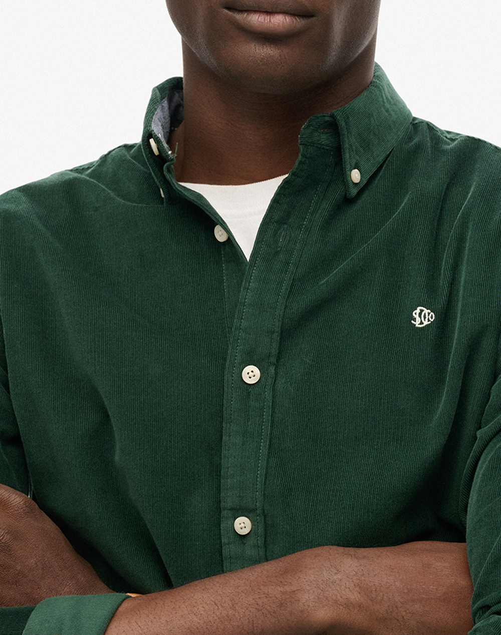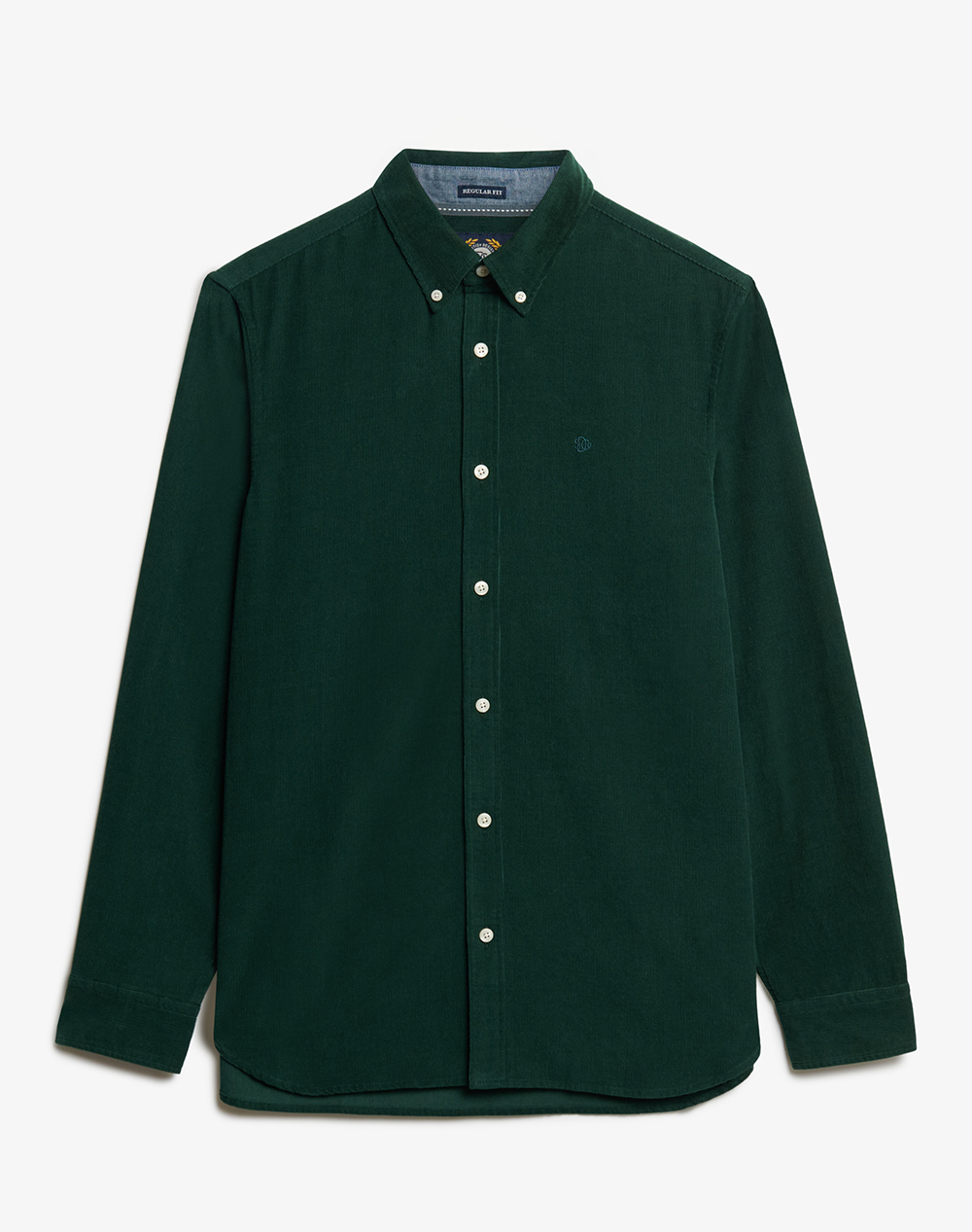 Ανδρικό κοτλέ πουκάμισο, σε κανονική, άνετη γραμμή, μακρυμάνικο, διαθέτει γιακά με κουμπιά και κεντητό λογότυπο στο στήθος. (Σύνθεση: 100% Βαμβάκι)