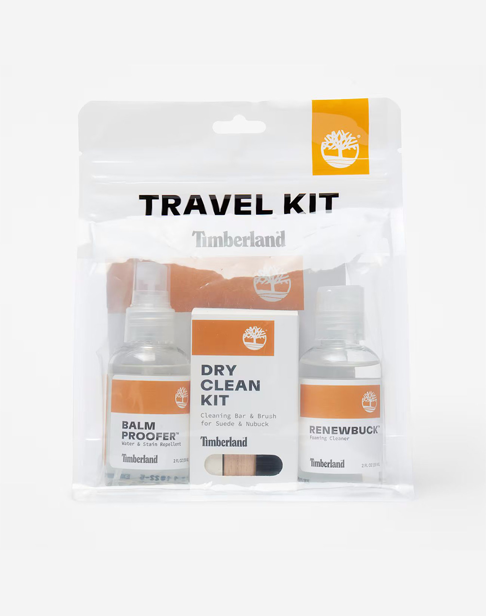 Timberland Travel Kit σετ ταξιδιου καθαρισμου παπουτσιων, με Balm Proofer™ Απωθητικό νερού και λεκέδων, Renewbuck™ Foaming Cleaner και Dry Cleaning Kit.