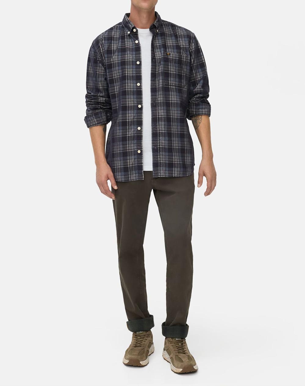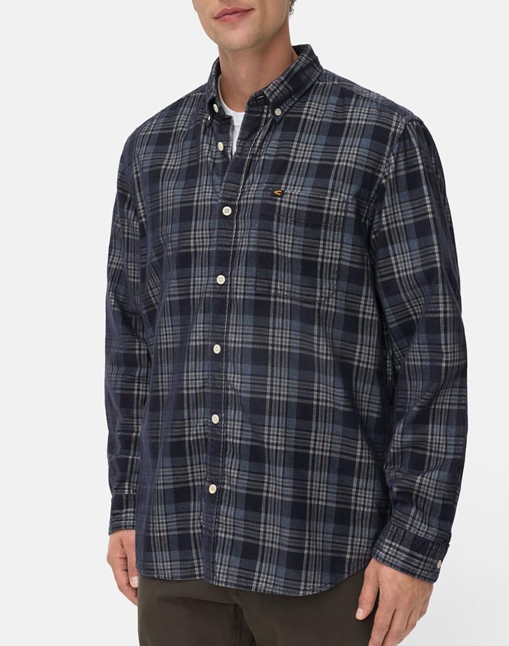 Ανδρικό πουκάμισο, σε κανονική γραμμή, μακρυμάνικο, με λεία ύφανση, λεπτομέρεια τσέπη στο στήθος με λογότυπο και γιακάς με κουμπιά. (Σύνθεση: 100% Βαμβάκι)