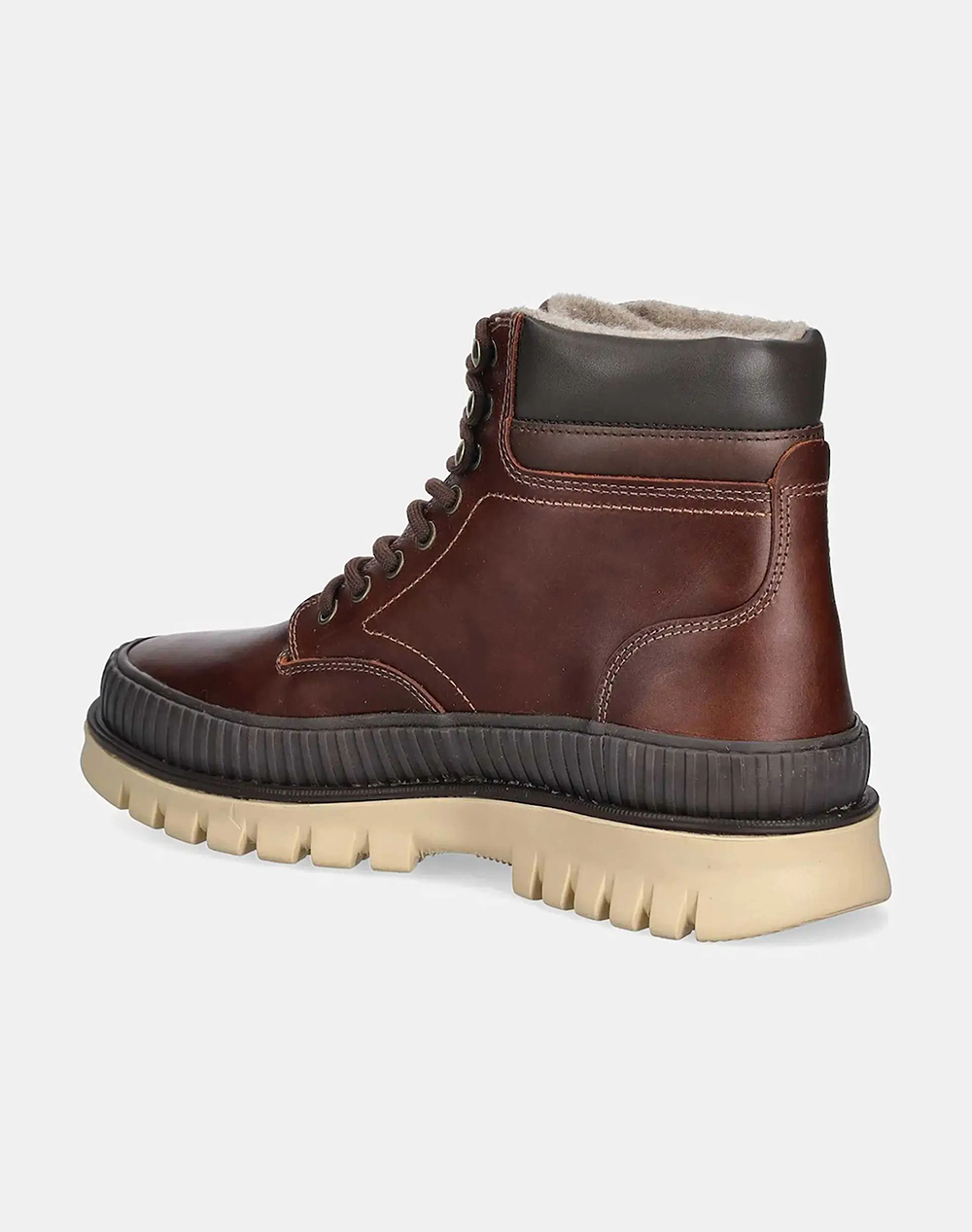 Ανδρικά μποτάκια, με στρογγυλή μύτη, θερμομόνωση εσωτερικά, εξωτερική σόλα από καουτσούκ και δέσιμο κορδόνια. (Σύνθεση: Δέρμα)