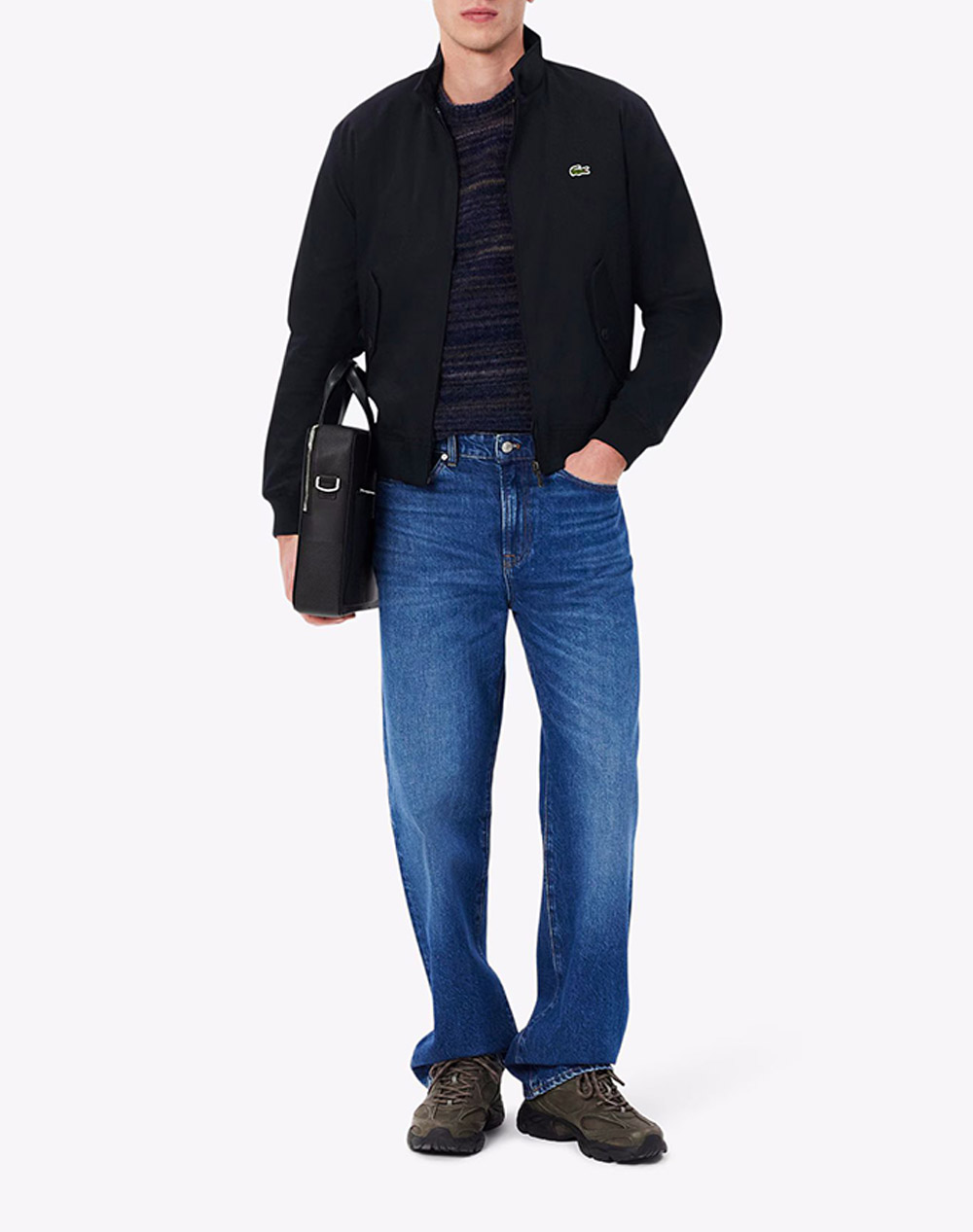 Ανδρικό μπουφάν, σε κανονική γραμμή, μακρυμάνικο, με δύο εξωτερικές τσέπες και μια εσωτερική, ψηλό λαιμό με κουμπία και κλείσιμο με φερμουάρ. (Σύνθεση: 97% Βαμβάκι, 3% Ελαστάνη)