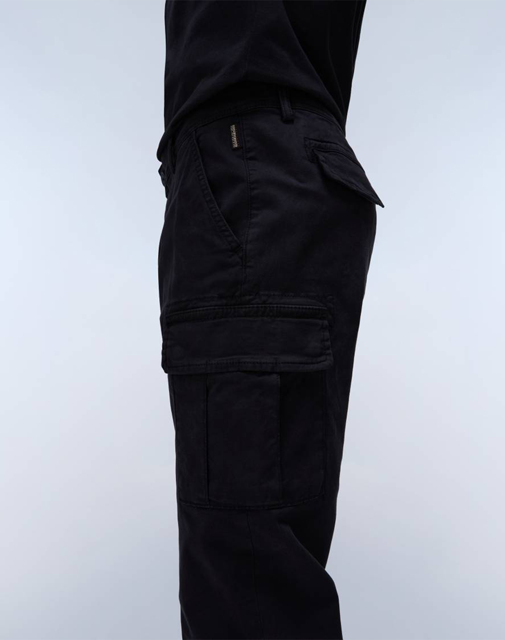 Ανδρικό παντελόνι cargo, σε κανονική γραμμή, με κοφτές μπροστινές τσέπες, πίσω τσέπες με καπάκι και πλαϊνές τσέπες cargo. Κλείνει μπροστά με φερμουάρ και κουμπί. (Σύνθεση: 98% Βαμβάκι, 2% Ελαστάνη)