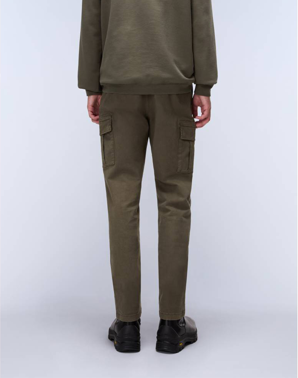 Ανδρικό παντελόνι cargo, σε κανονική γραμμή, με κοφτές μπροστινές τσέπες, πίσω τσέπες με καπάκι και πλαϊνές τσέπες cargo. Κλείνει μπροστά με φερμουάρ και κουμπί. (Σύνθεση: 98% Βαμβάκι, 2% Ελαστάνη)