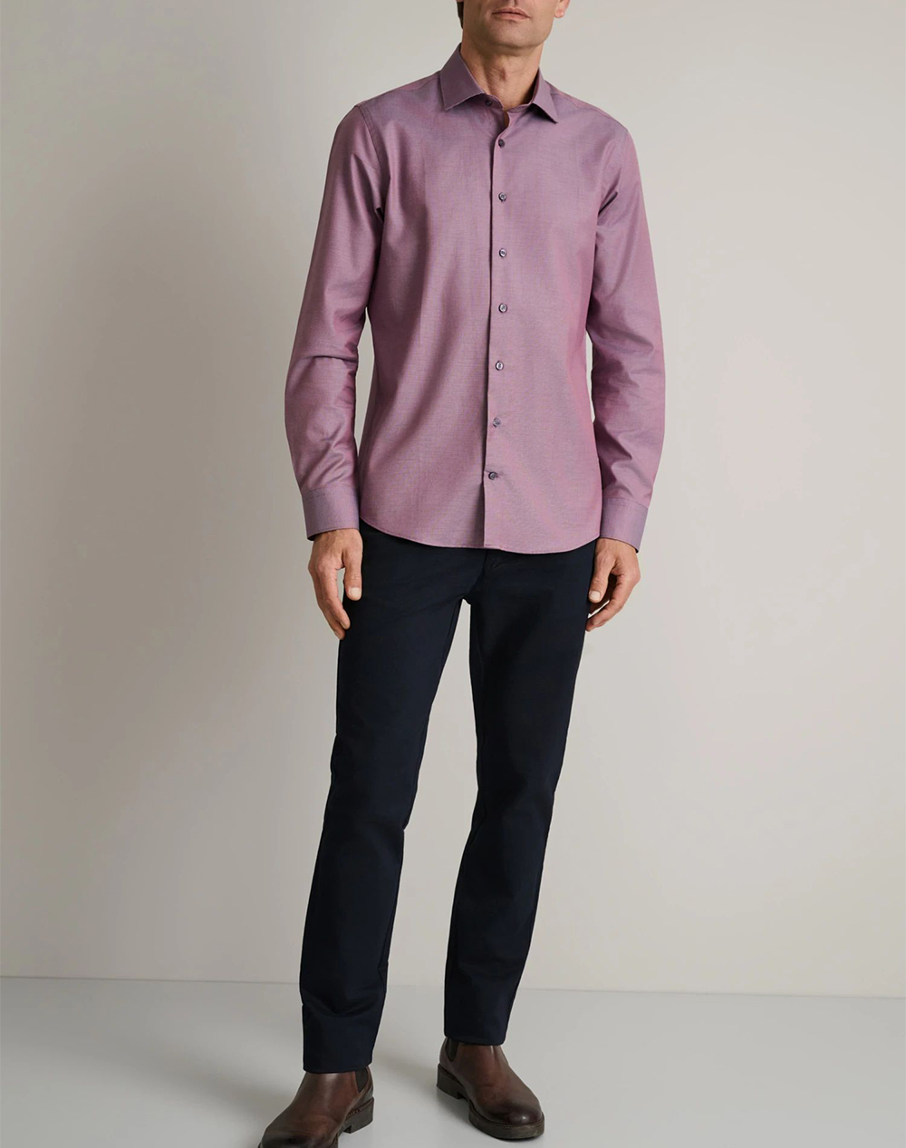 Ανδρικό πουκάμισο σε κανονική γραμμή, μακρυμάνικο, με two - tone sacquard σχέδιο, semi rex γιακά και κλείσιμο με κουμπιά μπροστά. (Σύνθεση: 100% Βαμβάκι)