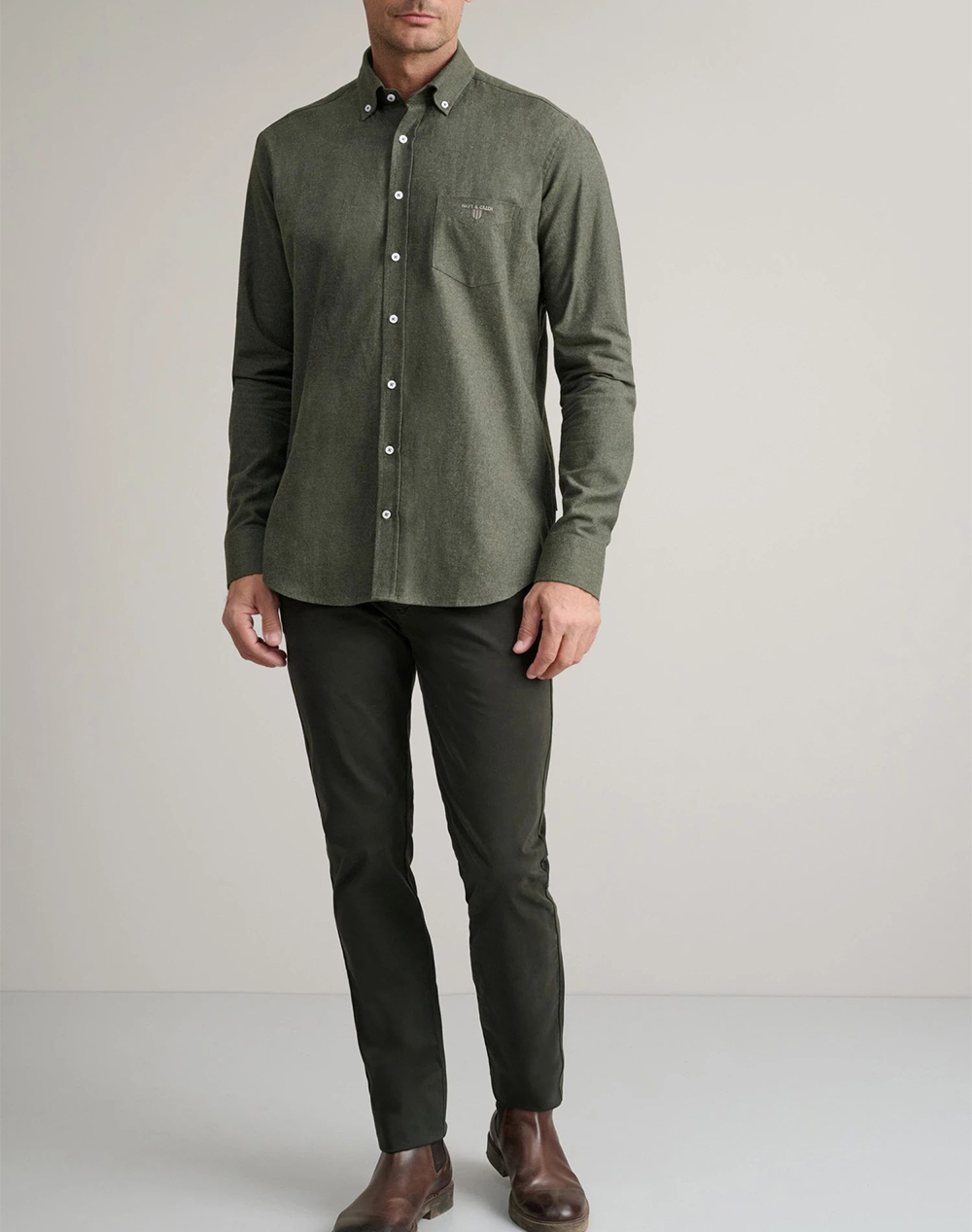 Ανδρικό πουκάμισο σε κανονική γραμμή, μακρυμάνικο, με twill σχέδιο , button down γιακά, τσέπη με λογότυπο στο στήθος και κλείσιμο με κουμπιά μπροστά. (Σύνθεση: 100% Βαμβάκι)