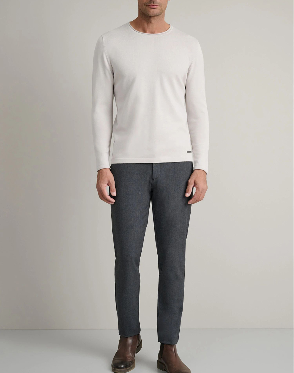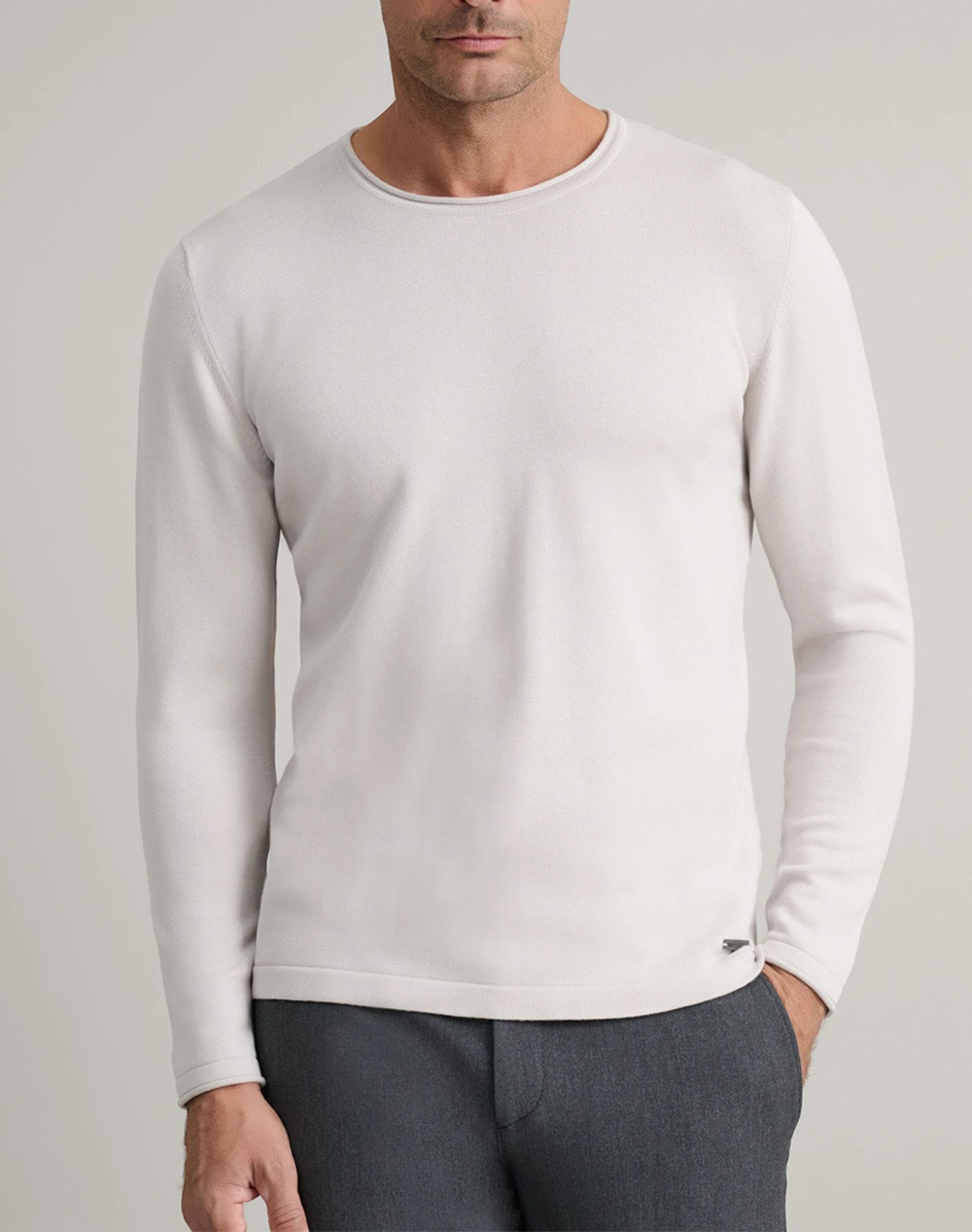 Ανδρική πλεκτή μπλούζα, σε κανονική γραμμή, μακρυμάνικη, με επεξεργασία cashmere wash και στρογγυλή λαιμόκοψη. (Σύνθεση: 100% Βαμβάκι)
