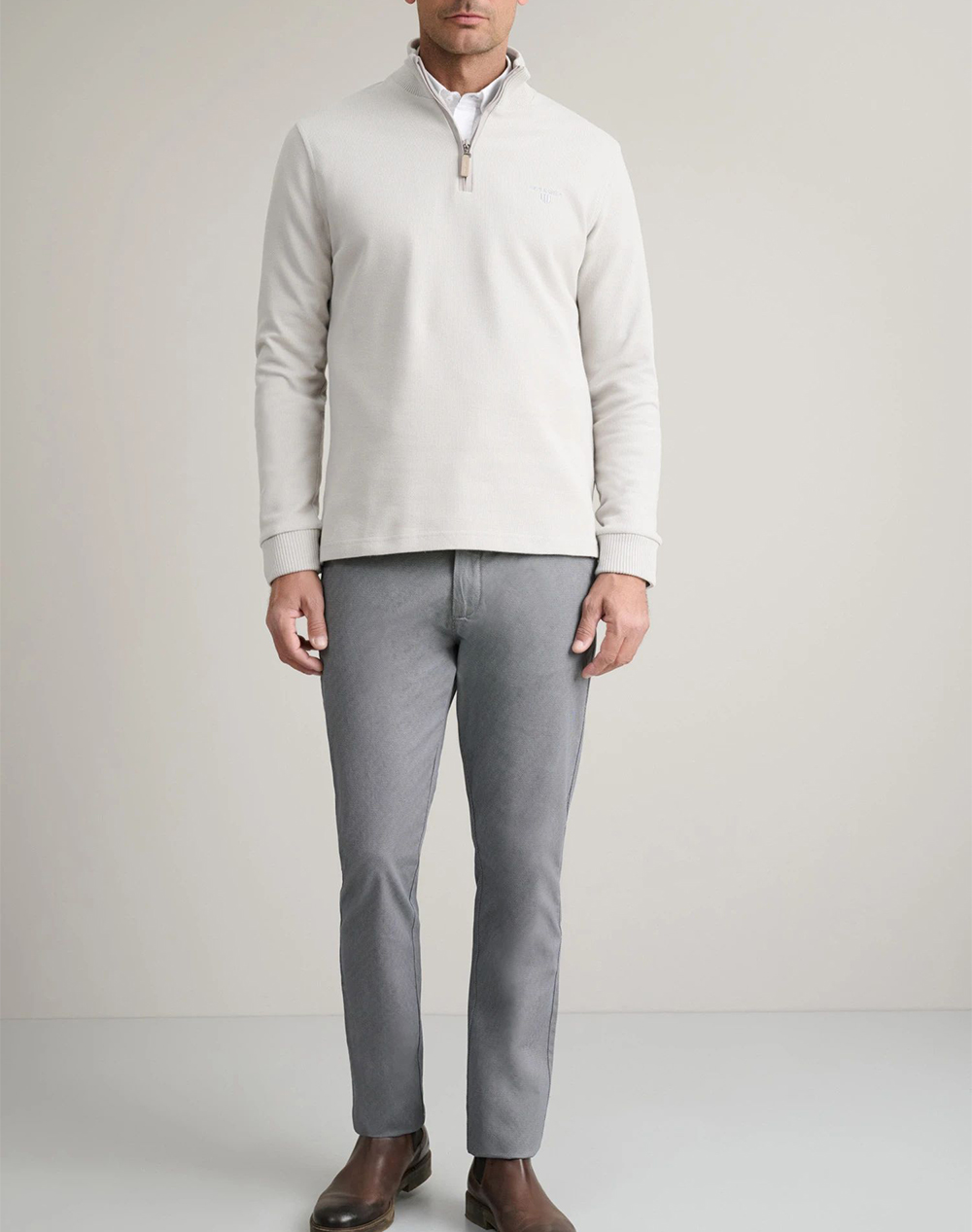Ανδρική πλεκτή μπλούζα, σε κανονική γραμμή, μακρυμάνικη, με λογότυπο στο στήθος και όρθιο γιακά με half zip. (Σύνθεση: 100% Βαμβάκι)