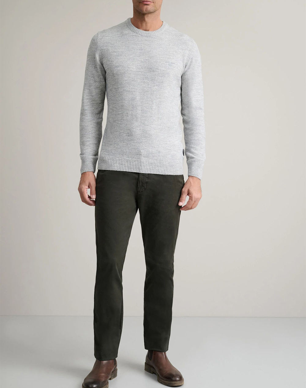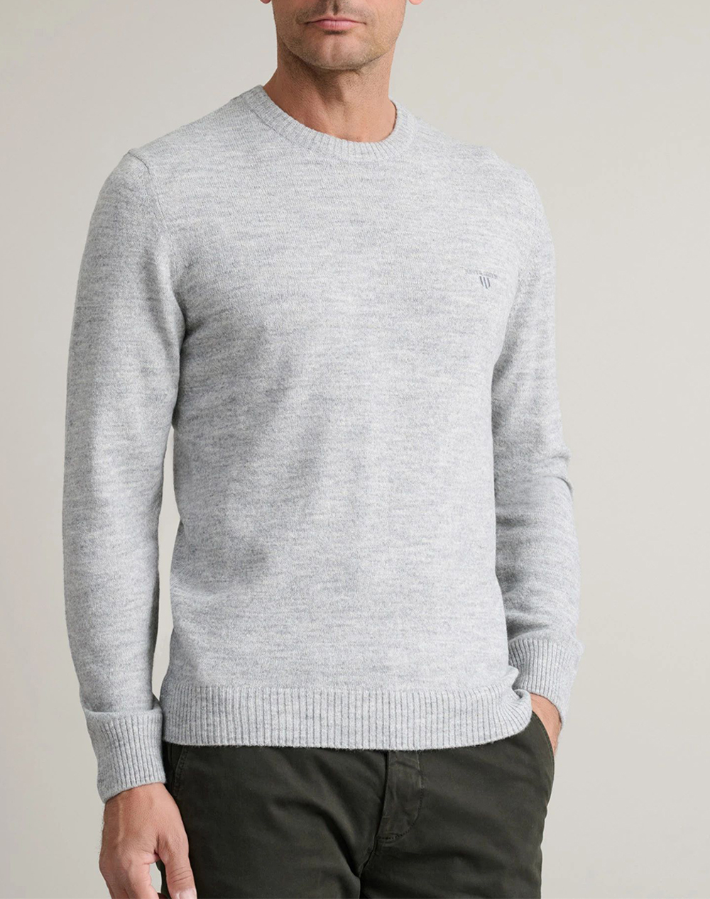 Ανδρική πλεκτή μπλούζα, σε κανονική γραμμή, μακρυμάνικη, με λογότυπο στο στήθος και στρογγυλή λαιμόκοψη. (Σύνθεση: 49% Πολυακρυλικό, 42% Βαμβάκι, 9% Πολυεστέρας)
