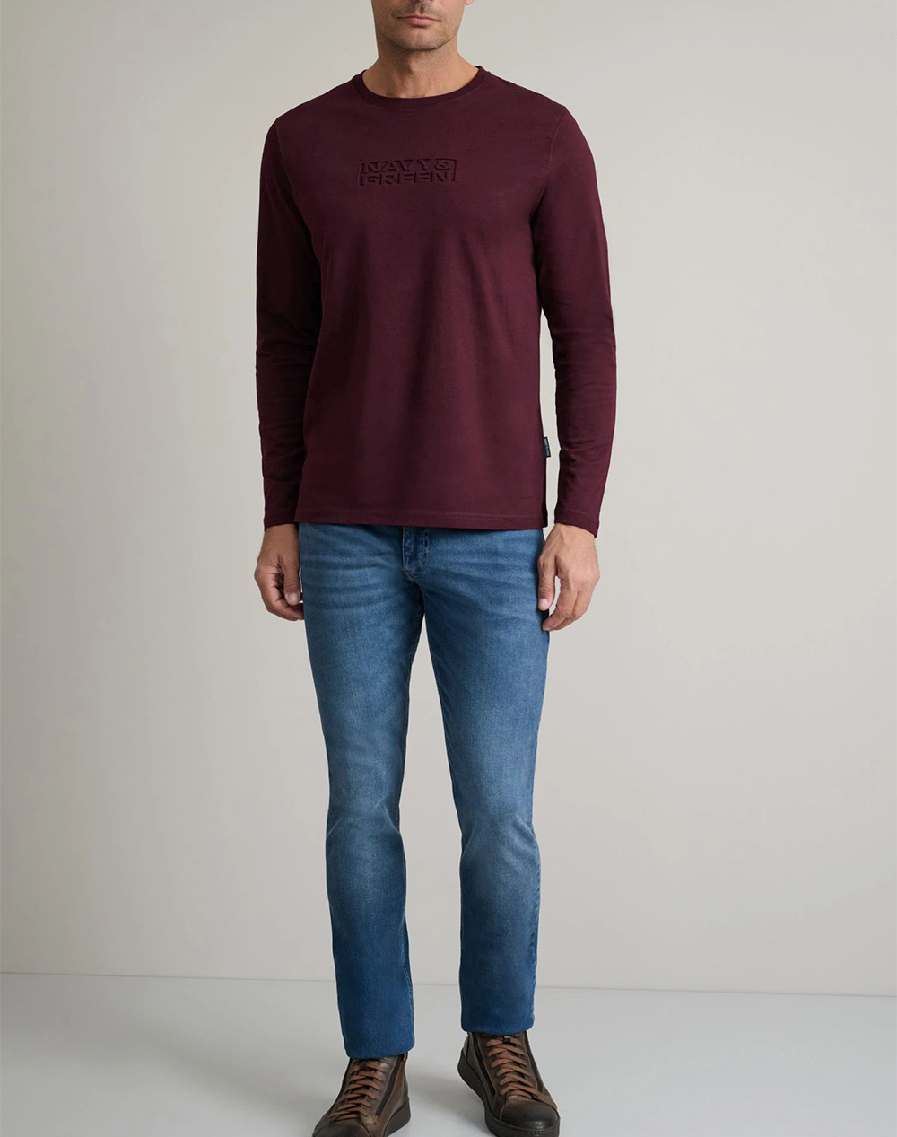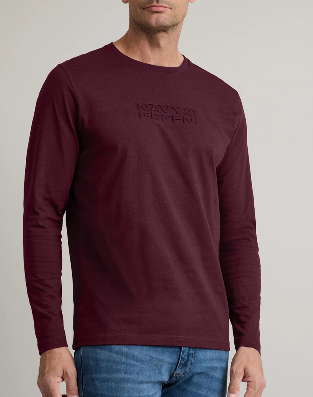 Ανδρικό t-shirt, σε κανονική γραμμή, μακρυμάνικο, με ανάγλυφο λογότυπο μπροστά και στρογγυλή λαιμόκοψη. (Σύνθεση: 100% Βαμβάκι)