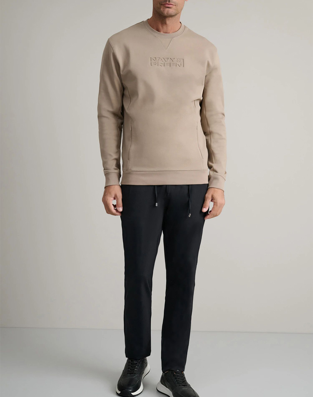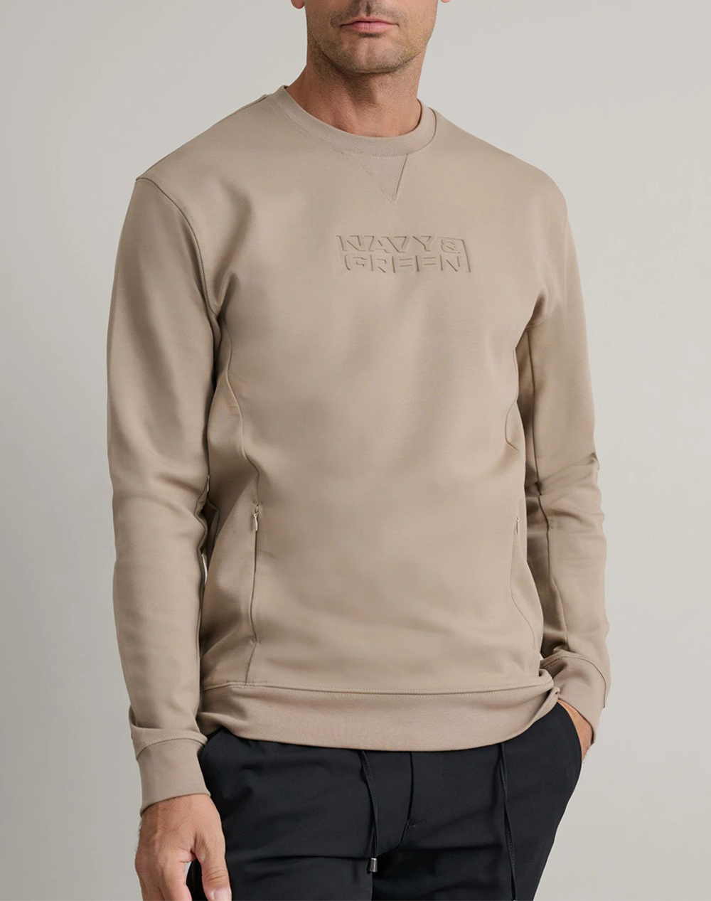 Ανδρική μπλούζα φούτερ, σε κανονική γραμμή, μακρυμάνικη, με ανάγλυφο λογότυπο μπροστά, τσέπες με φερμουάρ στο πλάι και στρογγυλή λαιμόκοψη. (Σύνθεση: 79% Βαμβάκι, 13% Πολυεστέρας, 8% Ελαστάνη)