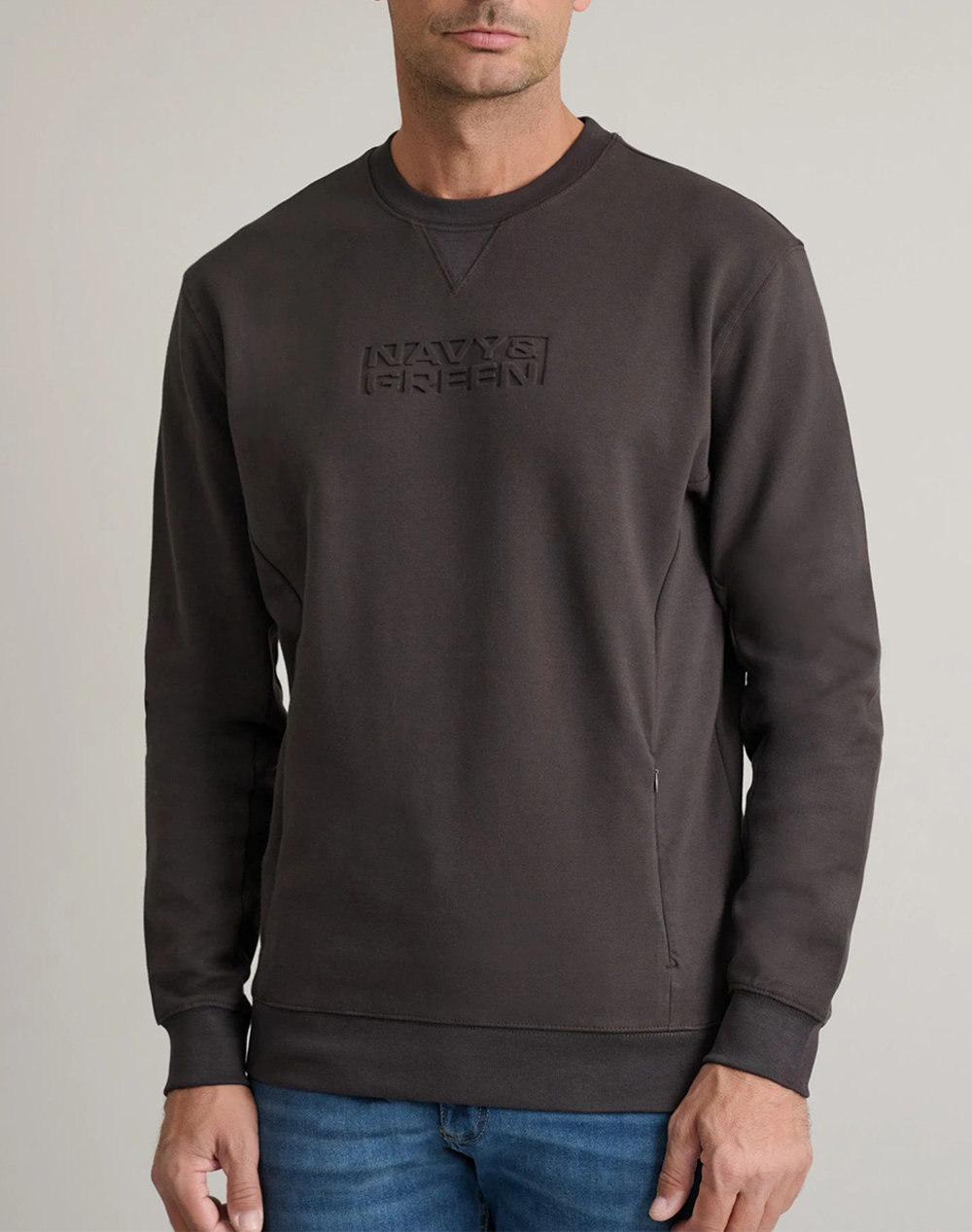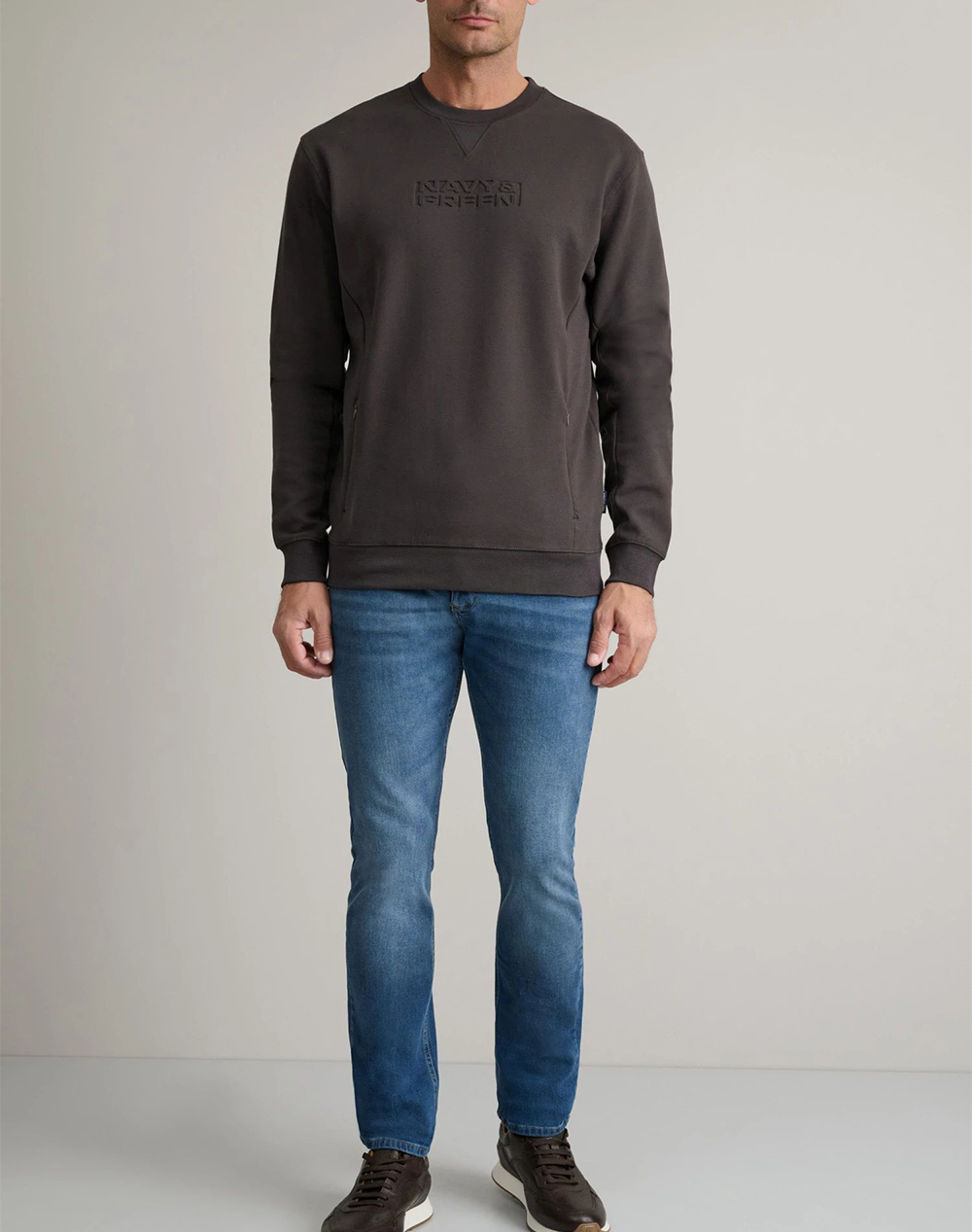 Ανδρική μπλούζα φούτερ, σε κανονική γραμμή, μακρυμάνικη, με ανάγλυφο λογότυπο μπροστά, τσέπες με φερμουάρ στο πλάι και στρογγυλή λαιμόκοψη. (Σύνθεση: 79% Βαμβάκι, 13% Πολυεστέρας, 8% Ελαστάνη)