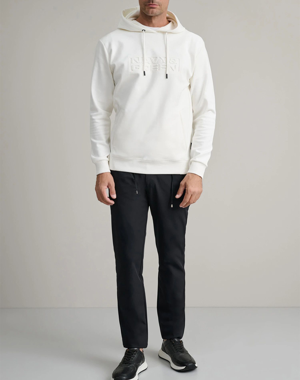 Ανδρική μπλούζα φούτερ, σε κανονική γραμμή, μακρυμάνικη, με ανάγλυφο λογότυπο μπροστά, τσέπη καγκουρό και κουκούλα με ρυθμιζόμενο κορδόνι. (Σύνθεση: 79% Βαμβάκι, 13% Πολυεστέρας, 8% Ελαστάνη)