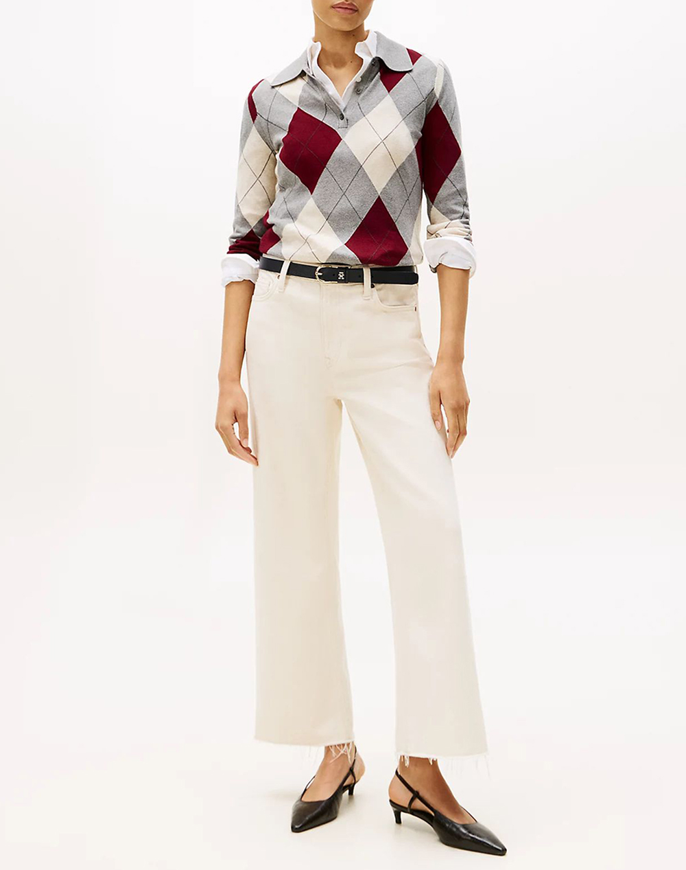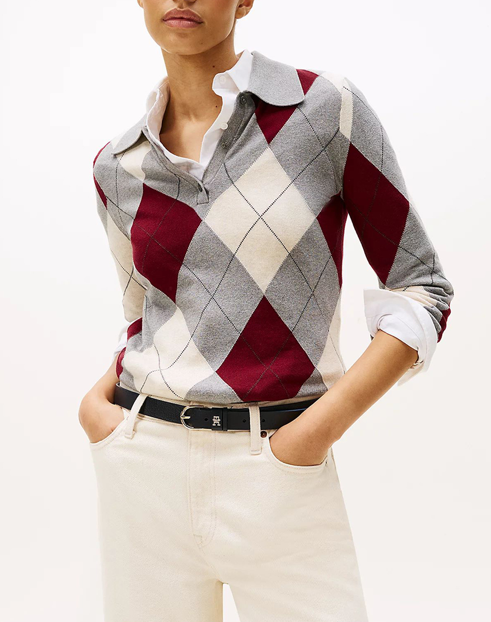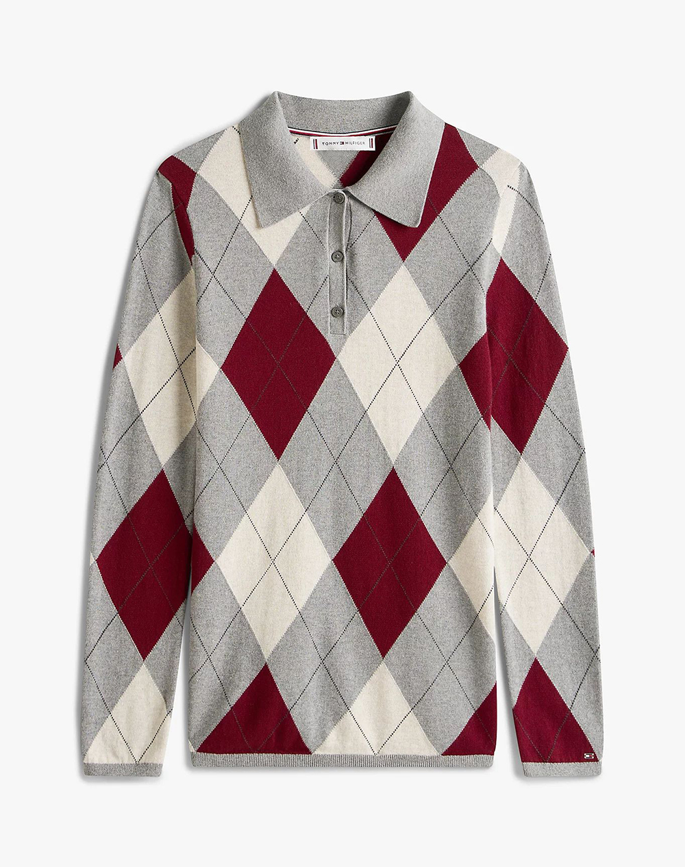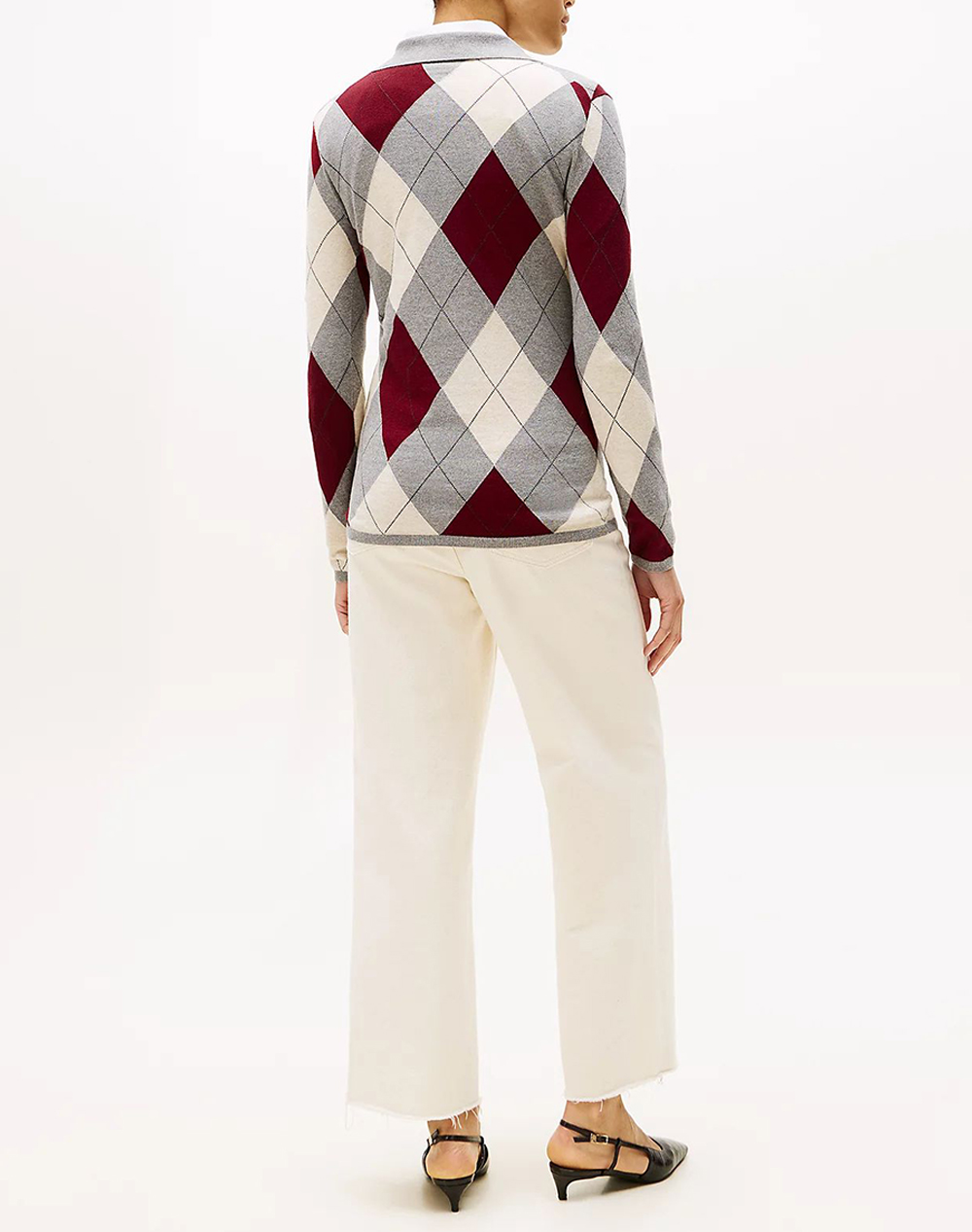 TOMMY HILFIGER CO ARGYLE POLO-NK SWEATER