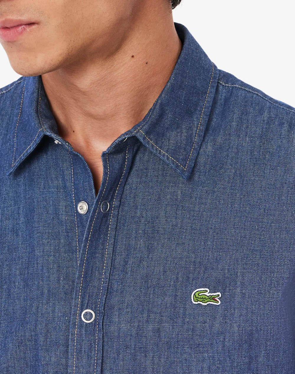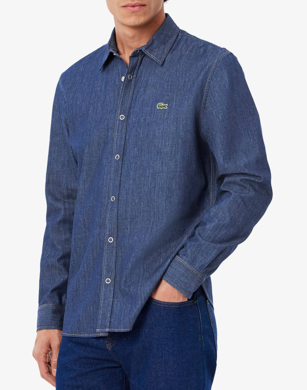 Ανδρικό jean πουκάμισο, σε κανονική γραμμή, μακρυμάνικο, με κλασσικό γιακά και λογότυπο στο στήθος. (Σύνθεση: 100% Βαμβάκι)