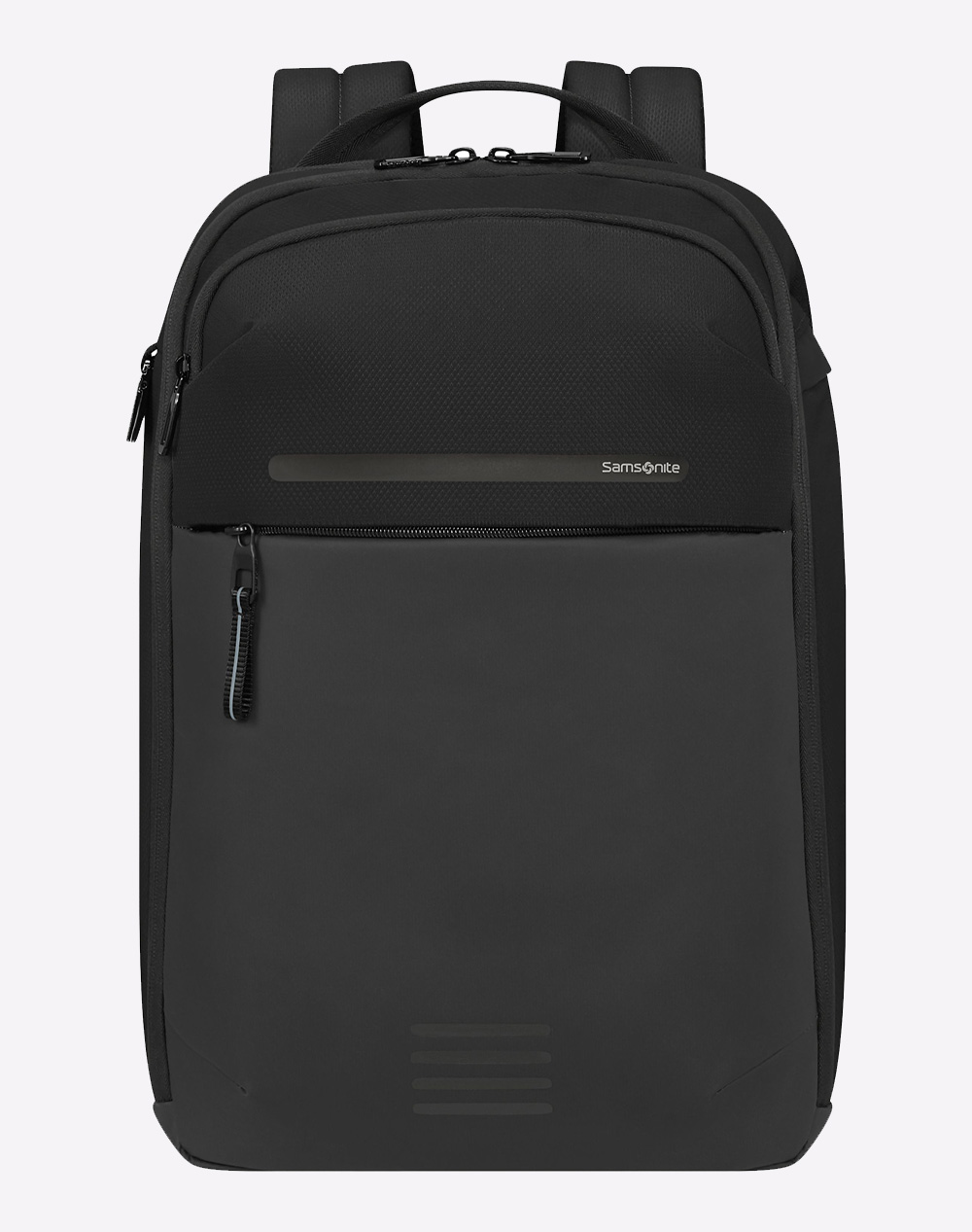 Σακίδιο πλάτης, αδιάβροχο, με κύρια θήκη και εξωτερικές θήκες που κλείνουν με φερμουάρ. Διαθέτει θέση για laptop 15.6'', μία λαβή χειρός και ρυθμιζόμενους ιμάντες πλάτης. Διαστάσεις: 44 x 28 x 18εκ. (Σύνθεση: 100% rPET)