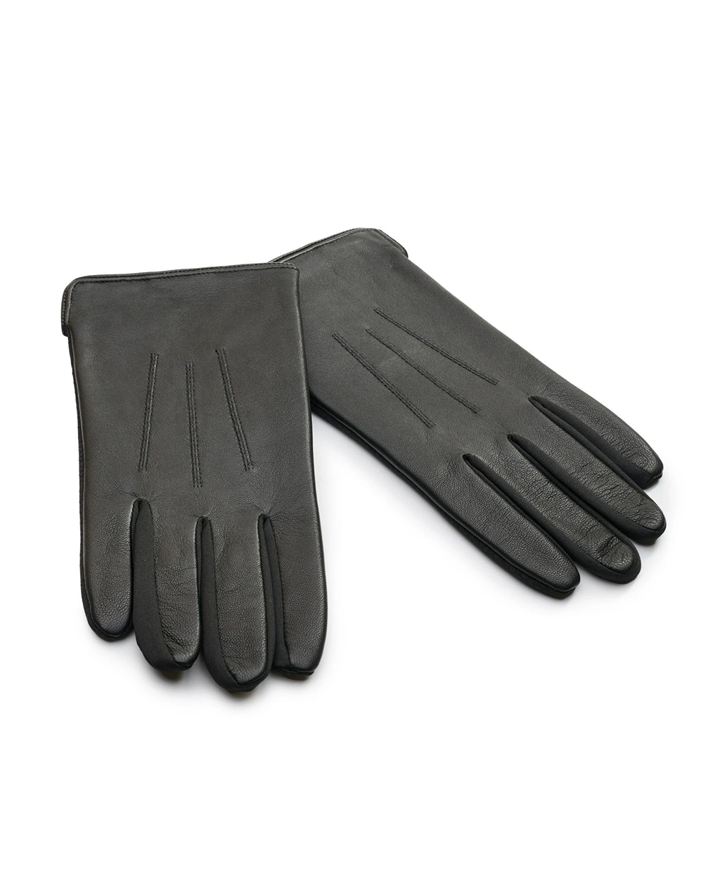 Ανδρικά γάντια μονόχρωμα, με κάθετα διακοσμητικά γαζιά. (Σύνθεση: 100% Δέρμα)