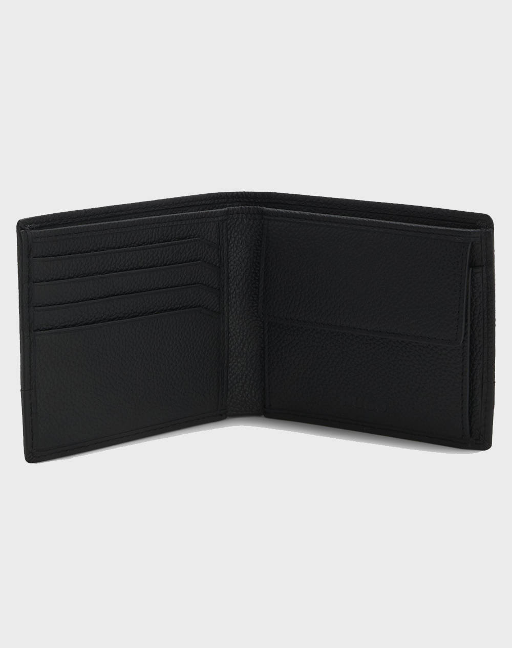 Ανδρικό πορτοφόλι, με θήκη για χαρτονομίσματα, τσέπη νομισμάτων που κλείνεται μα κούμπωμα και λεπτομέρεια λογότυπο στη μία όψη. (Σύνθεση: 100% Φυσικό δέρμα)