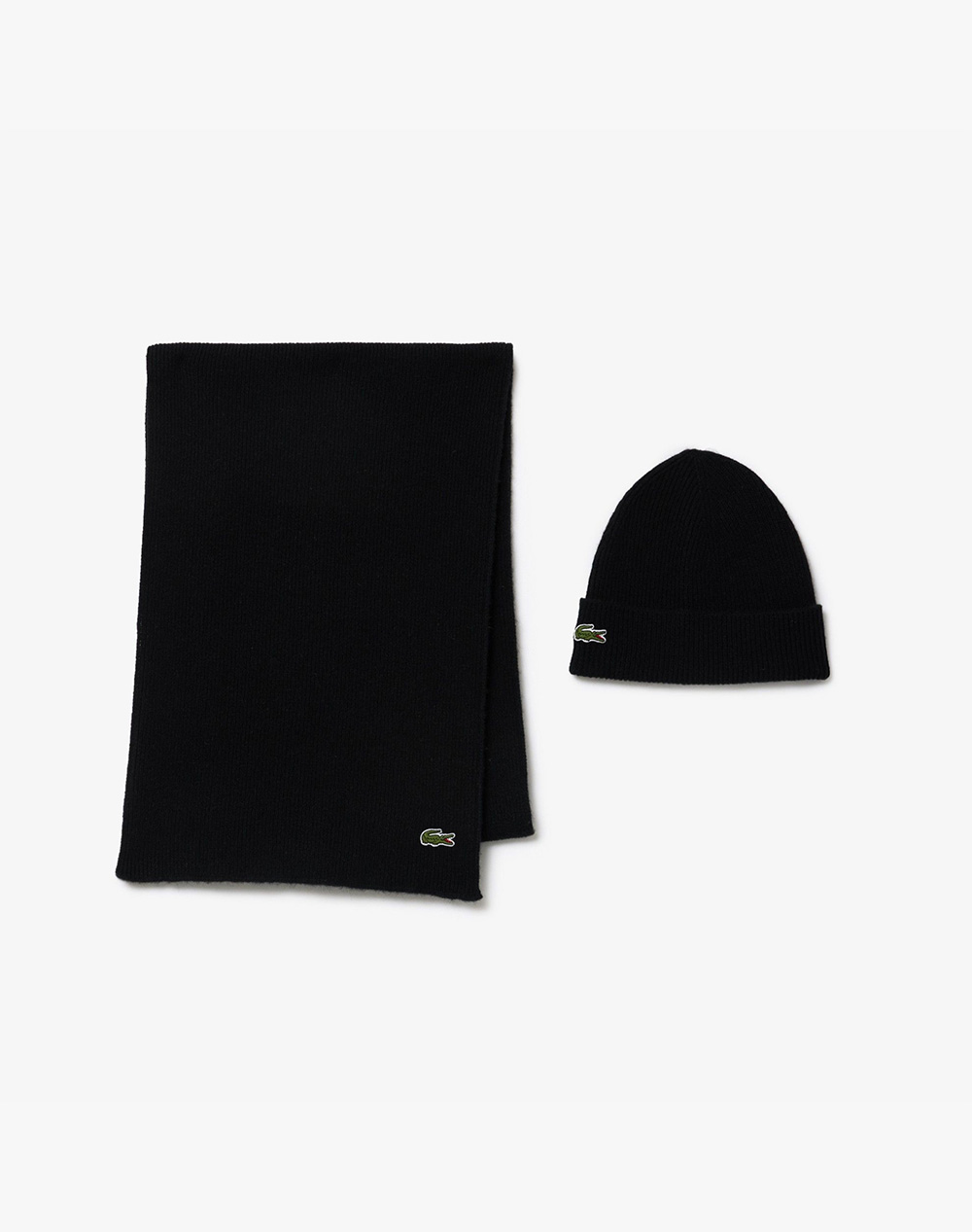 Σετ πλεκτός σκούφος και κασκόλ, μονόχρωμο, με rib ύφαση και λεπτομέρεια με λογότυπο. Διαστάσεις κασκόλ: 29 x 184εκ. (Σύνθεση: 68% Μαλλί, 26% Πολυαμίδιο, 3% Ακρυλικό, 1% Βαμβάκι, 1% Πολυεστέρας, 1% Βισκόζη)