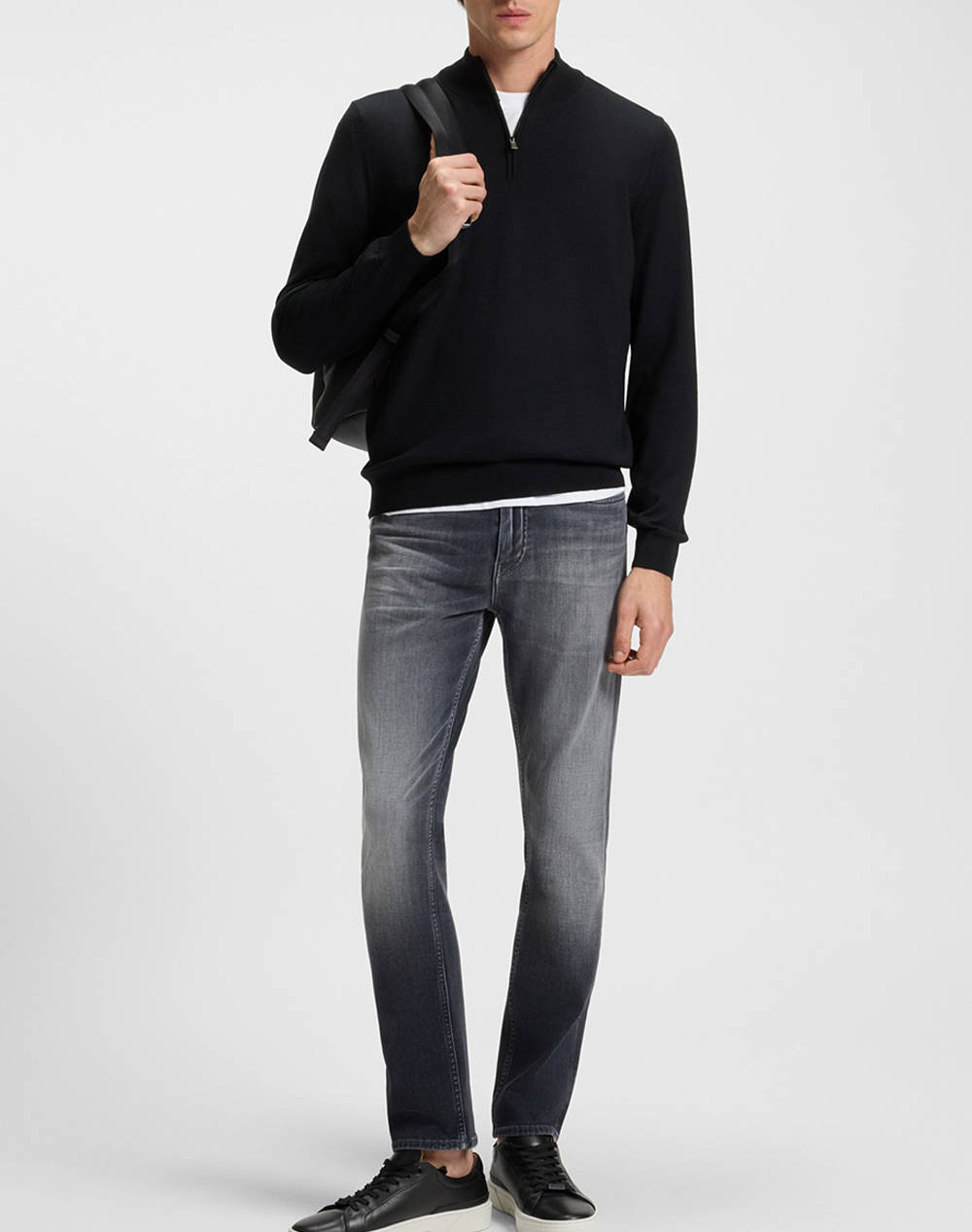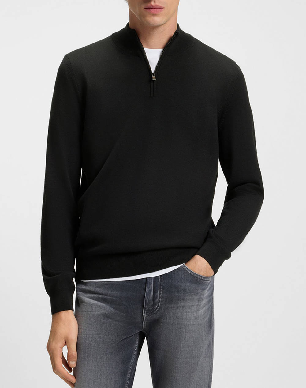 Ανδρικό πουλόβερ, σε κανονική γραμμή, μακρυμάνικο, με ψηλή λαιμόκοψη που κλείνει με μισό φερμουάρ. (Σύνθεση: 100% Φυσικό μαλλί)